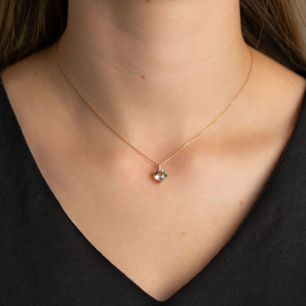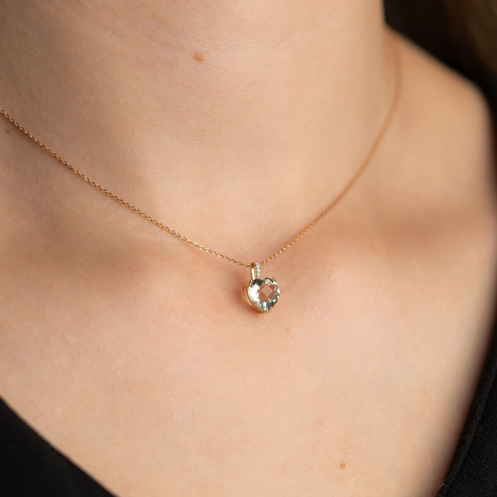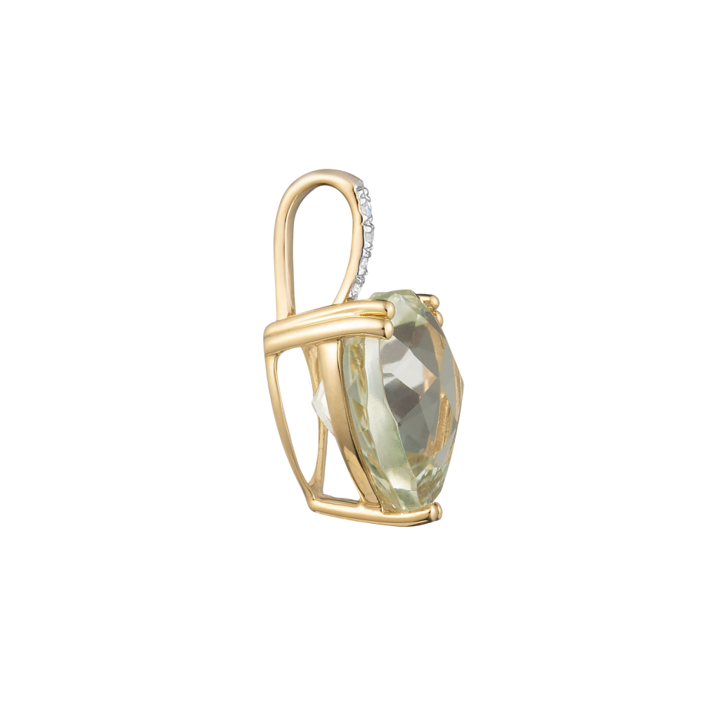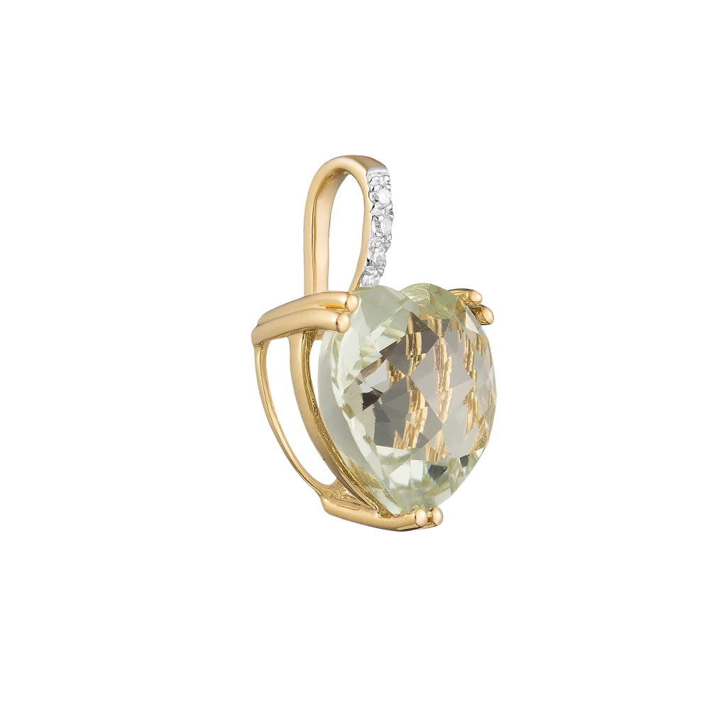 Geltono aukso pakabukas su kvarcu ir deimantais