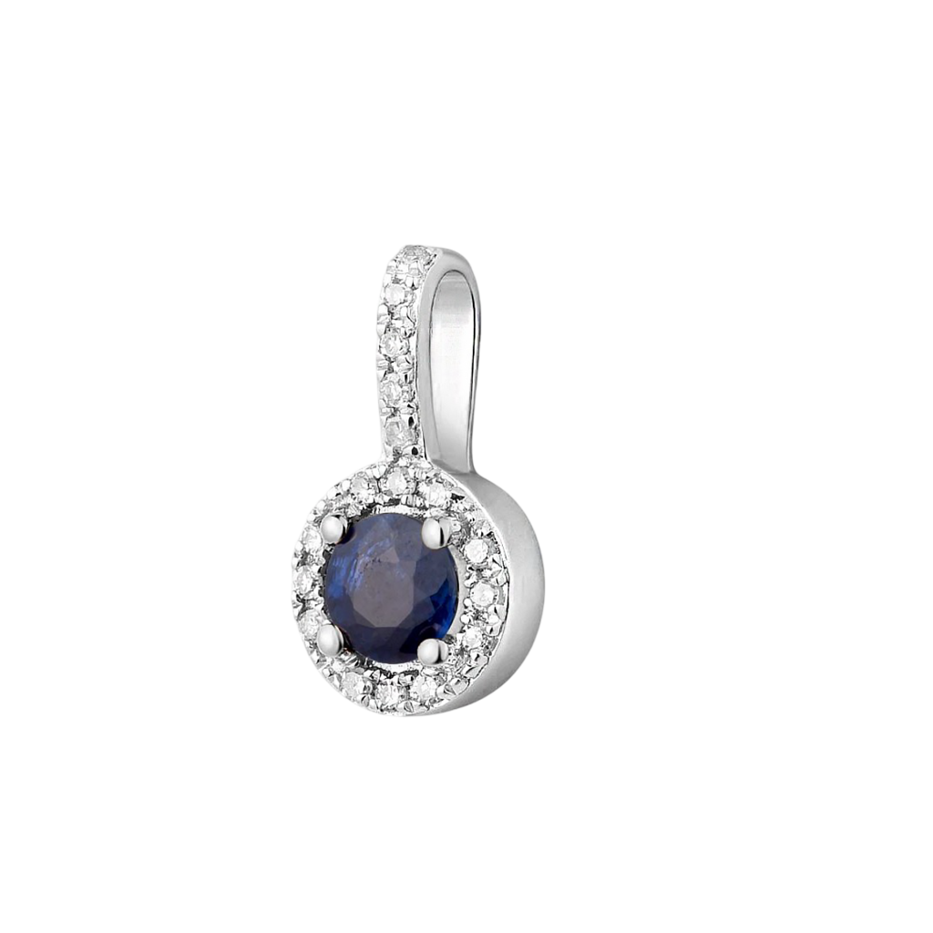 Balto aukso pakabukas su deimantais ir safyru - Pakabukai su brangakmeniais - Goldinga