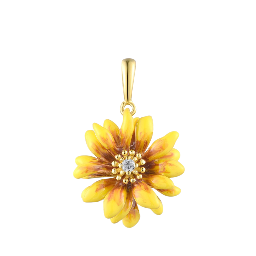 Paauksuotas sidabrinis pakabukas su emale ir cirkonius - Sidabriniai pakabukai - Goldinga