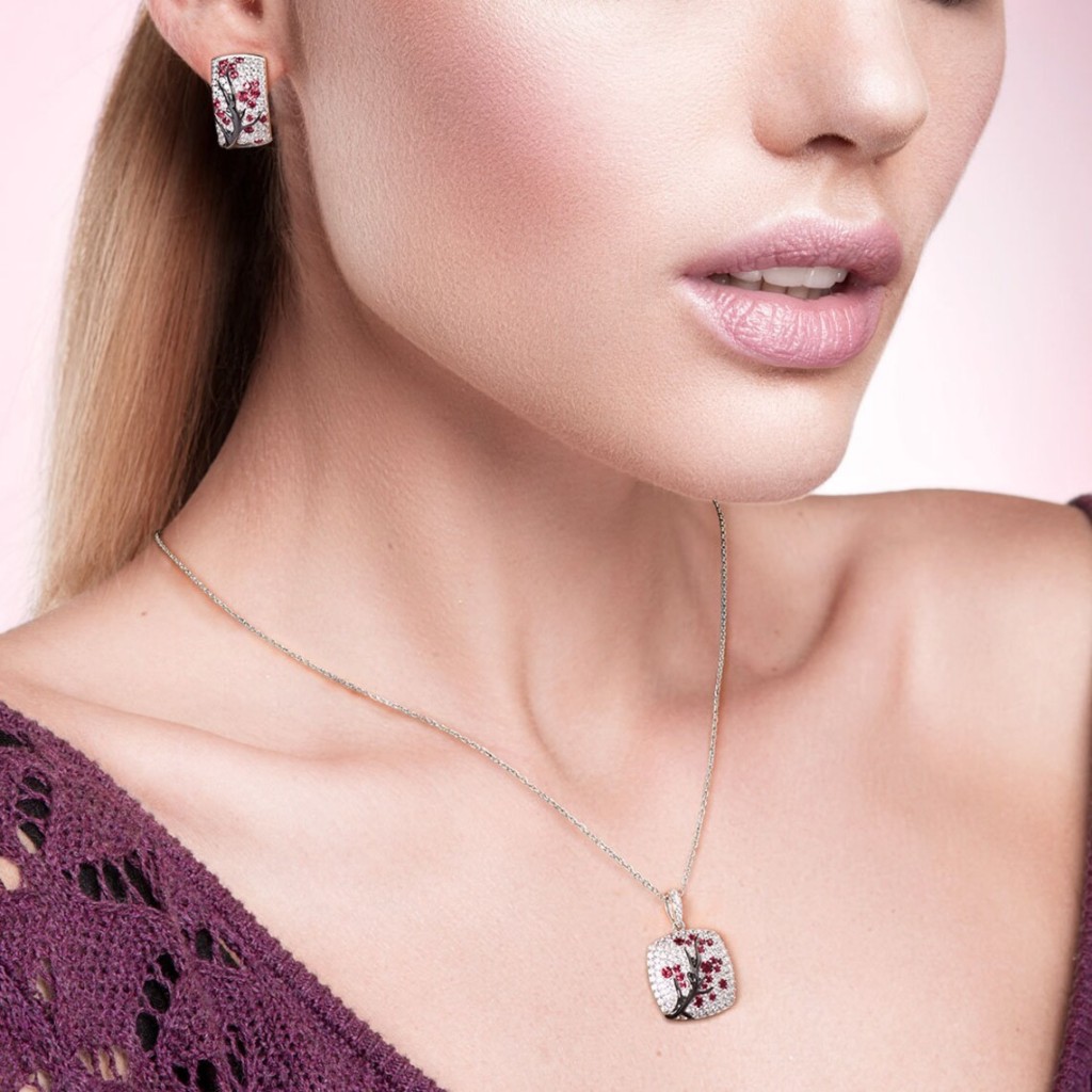 Sidabrinis pakabukas su nano rubinais ir cirkoniais