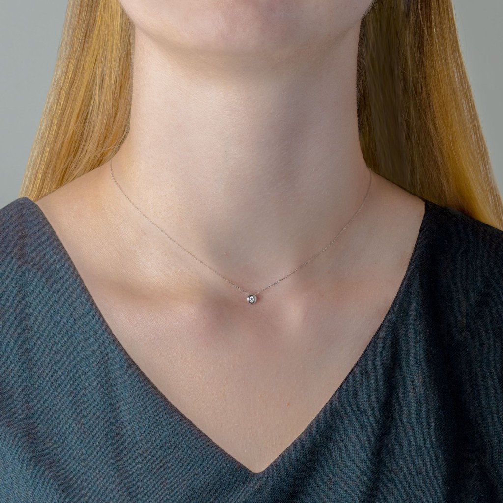 Balto aukso grandinėlė su cirkonio pakabuku - Perkamiausi - Goldinga