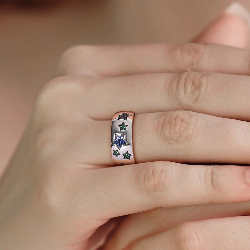 Sidabrinis žiedas su špineliais ir nano safyru - Perkamiausi - Goldinga