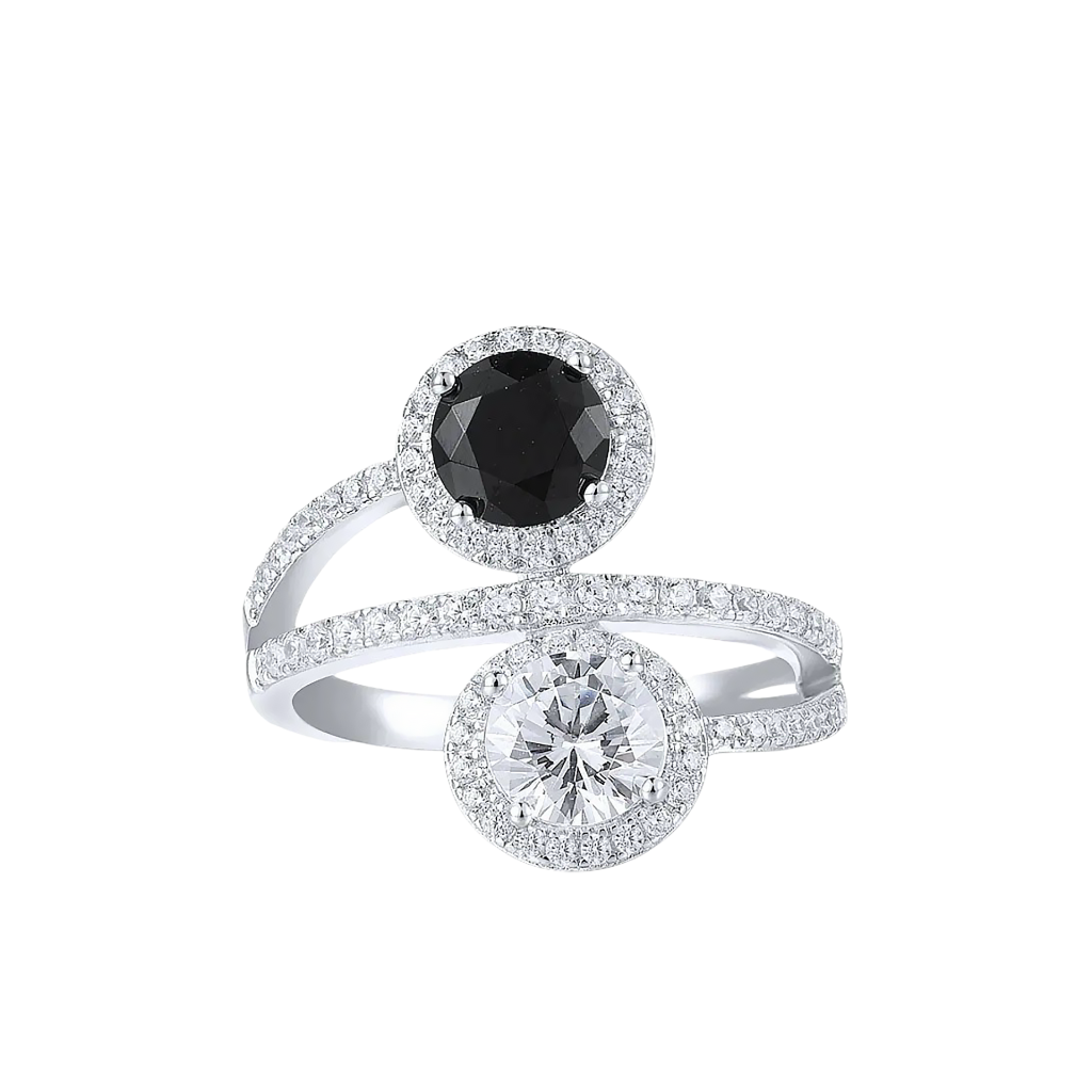 Sidabrinis žiedas su cirkoniais ir špineliais
