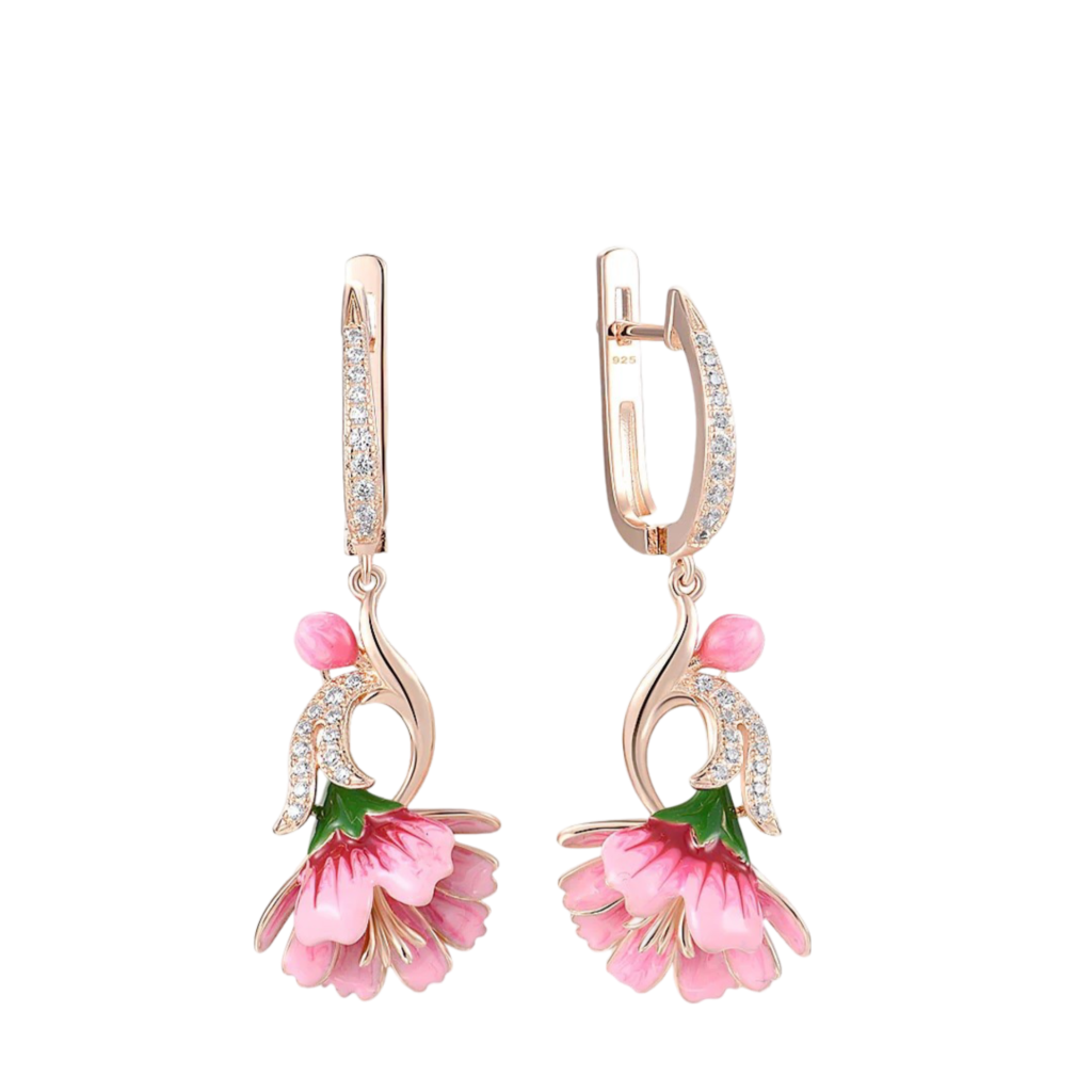 Paauksuoti sidabriniai auskarai su cirkoniais ir emale