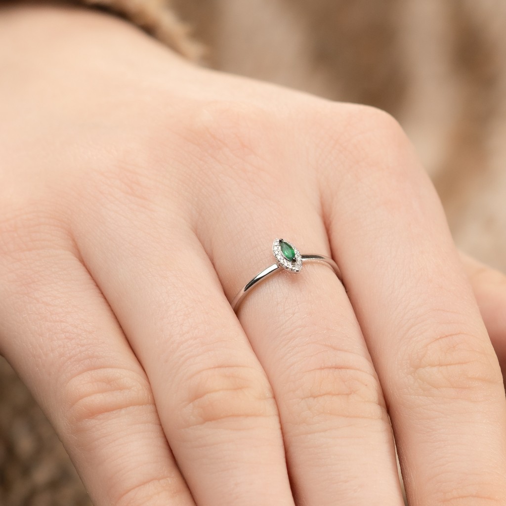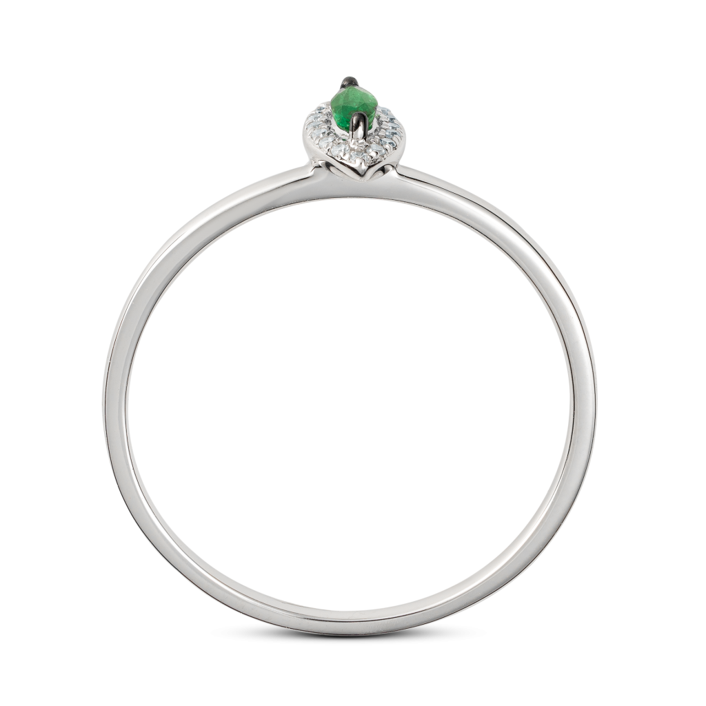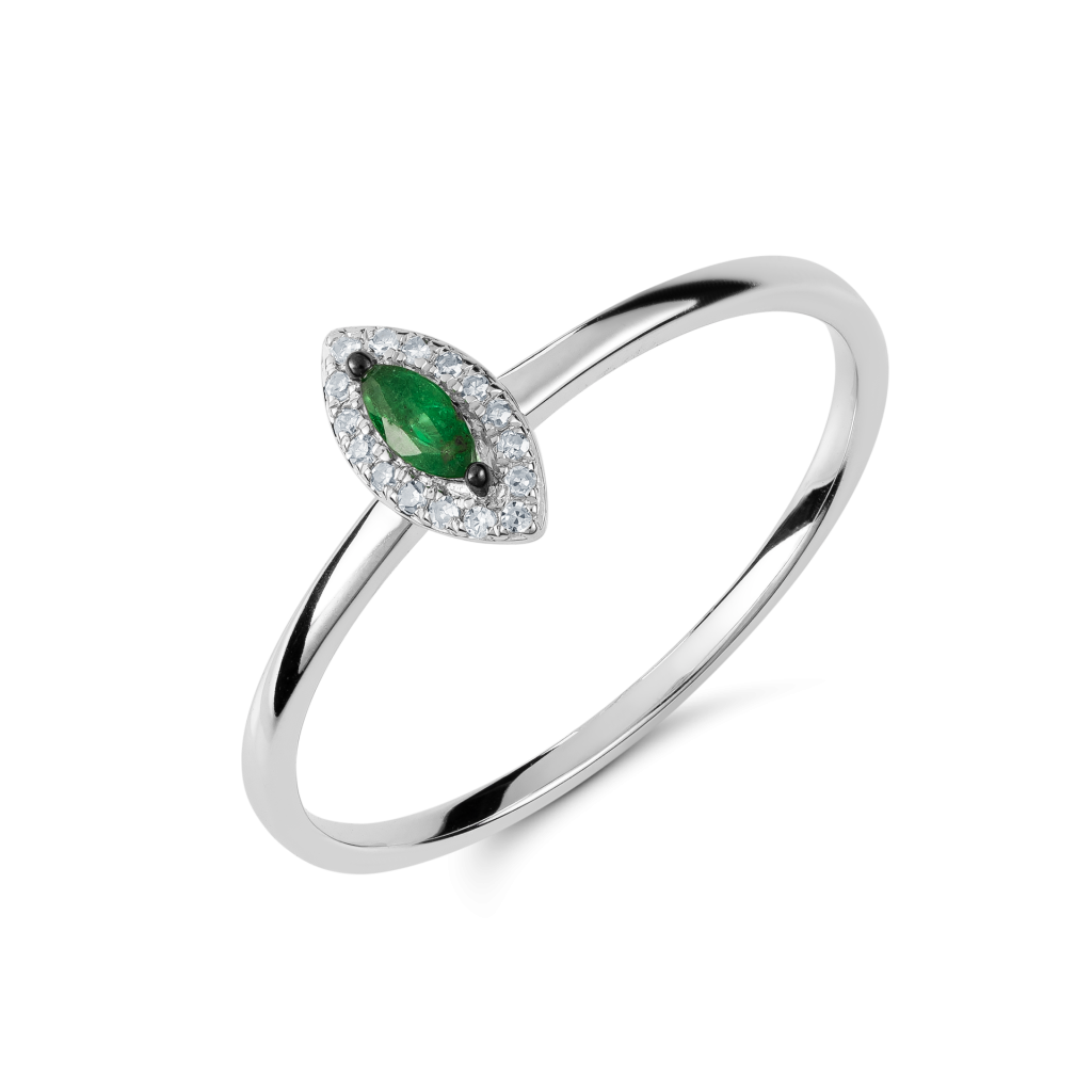 Balto aukso žiedas su smaragdu ir deimantais - Auksiniai Žiedai su brangakmeniais - Goldinga