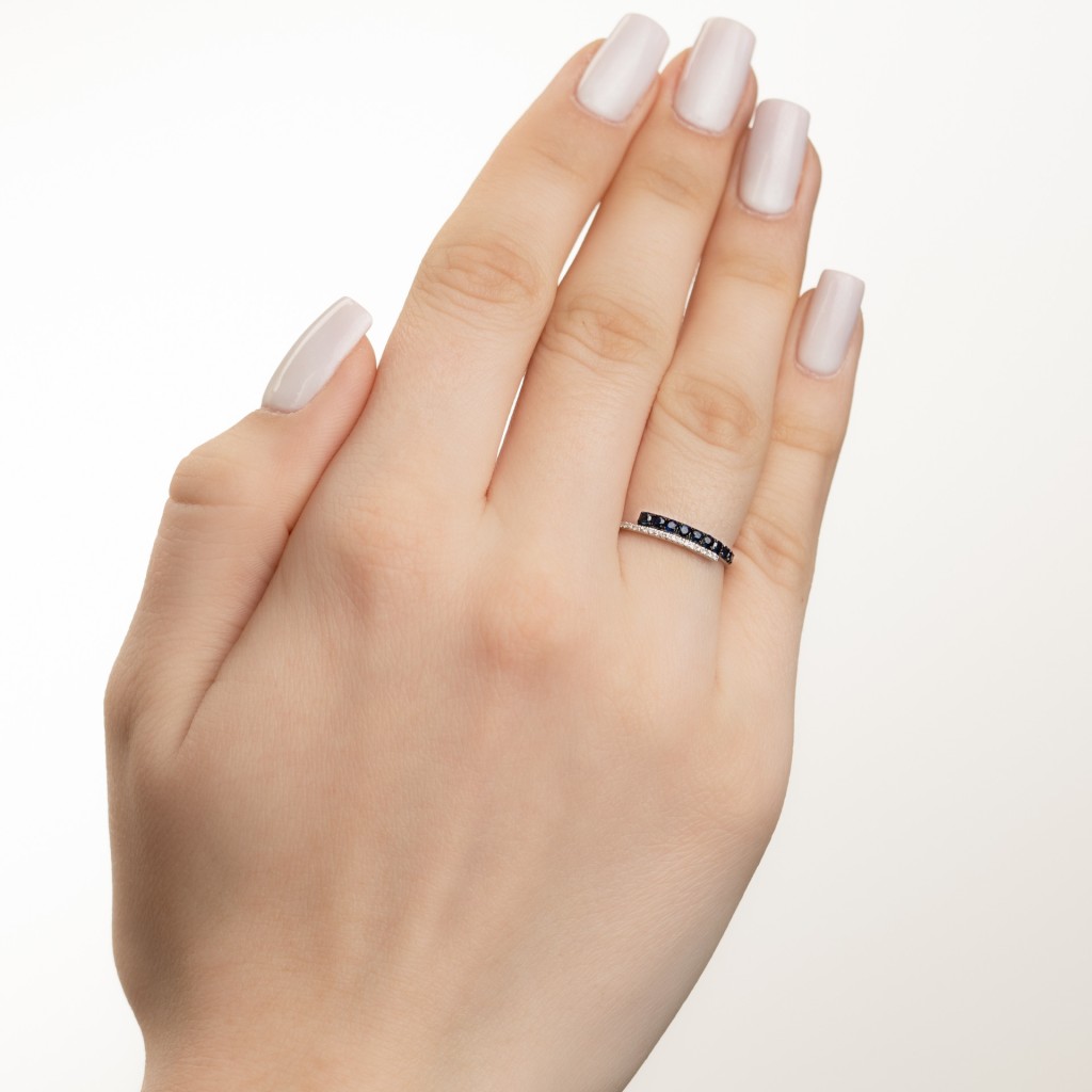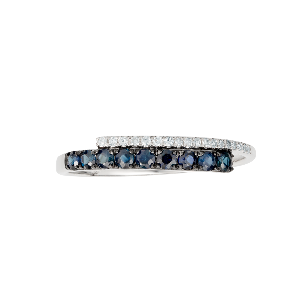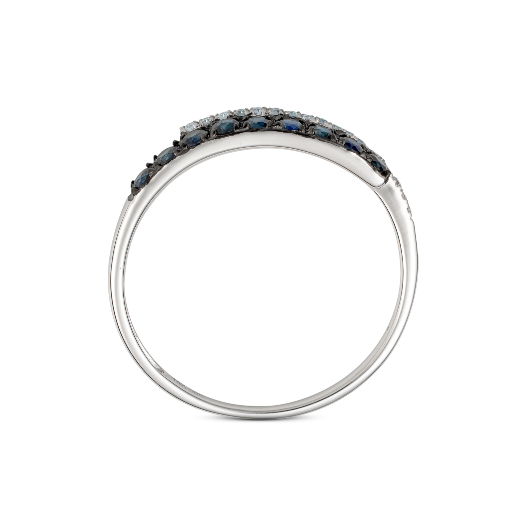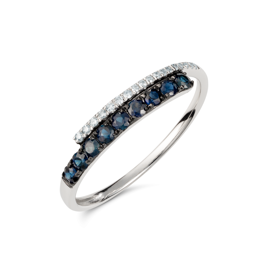 Balto aukso žiedas su safyrais ir deimantais - Auksiniai Žiedai su brangakmeniais - Goldinga