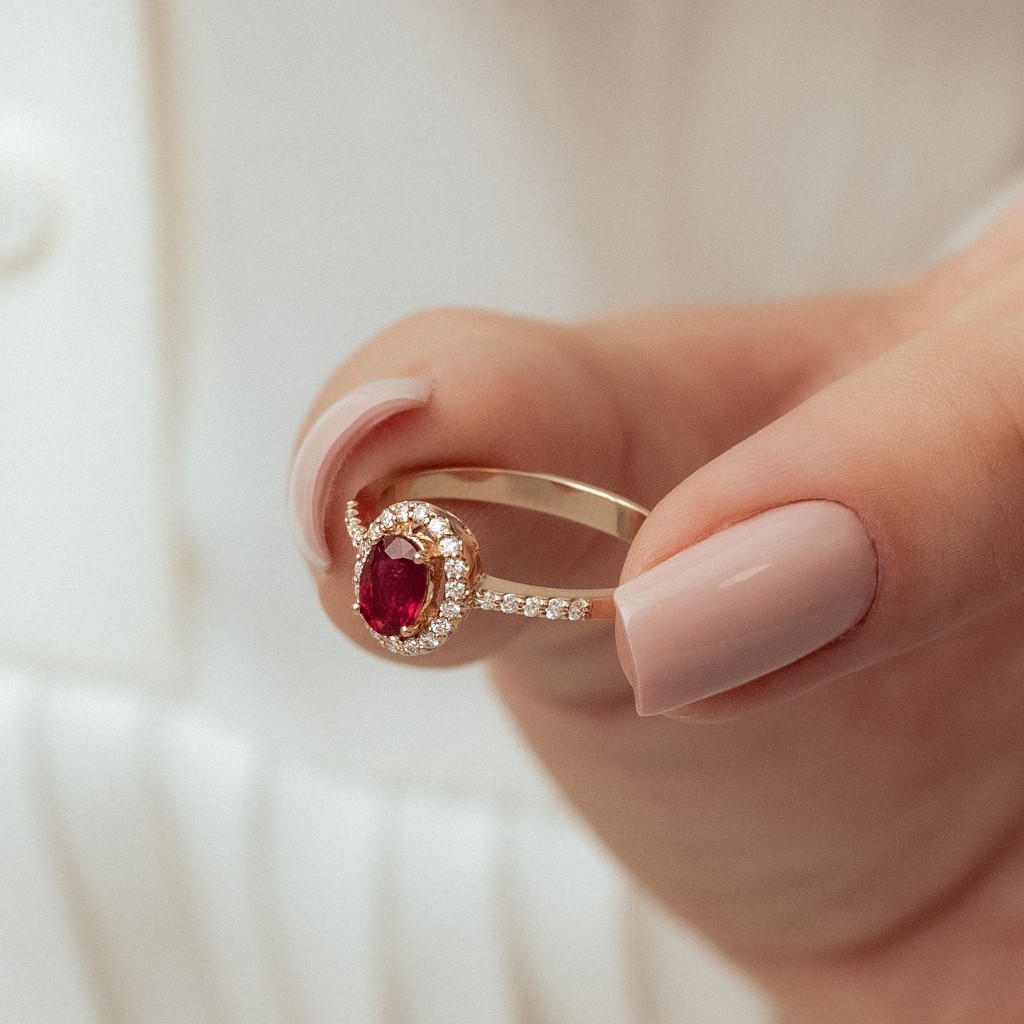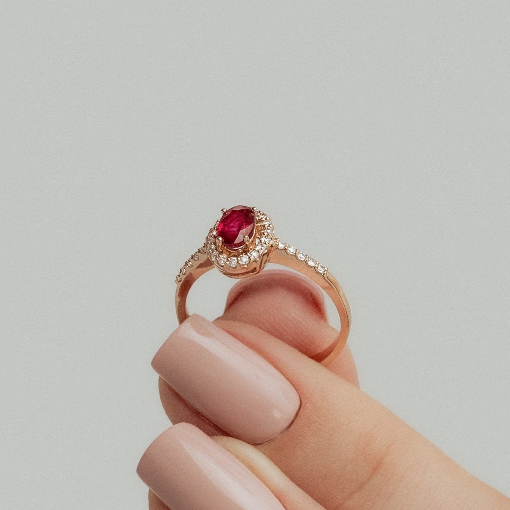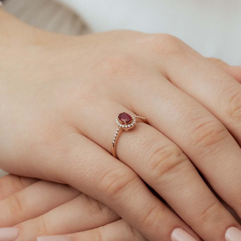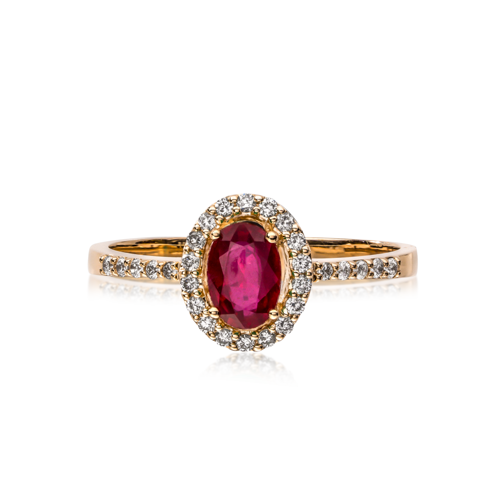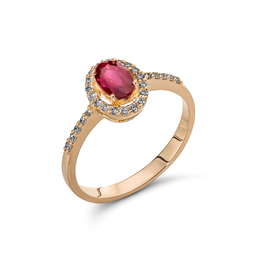 Auksinis žiedas su rubinu ir deimantais