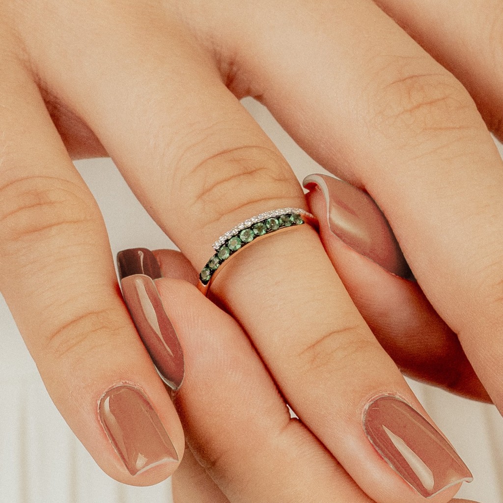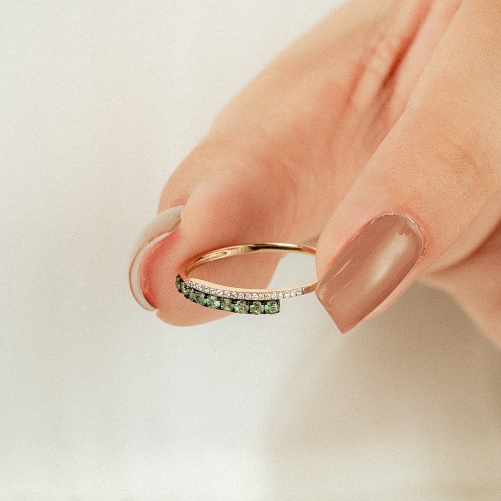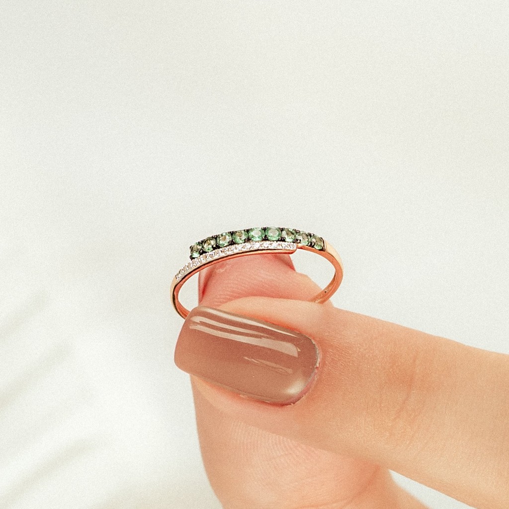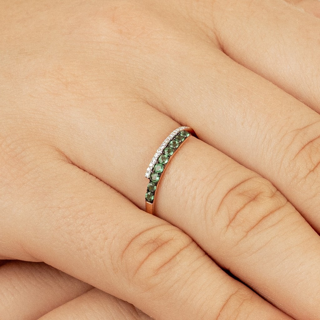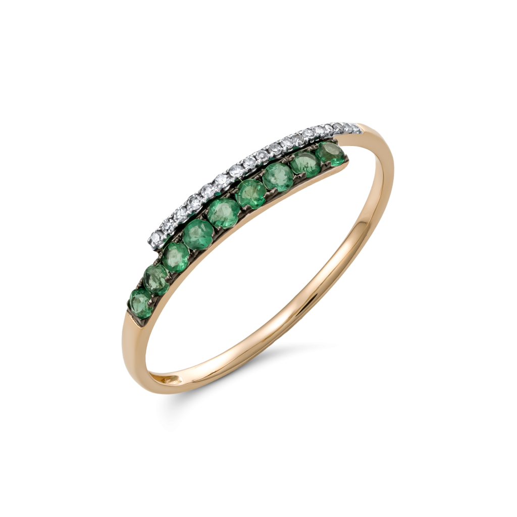 Auksinis žiedas su smaragdais ir deimantais