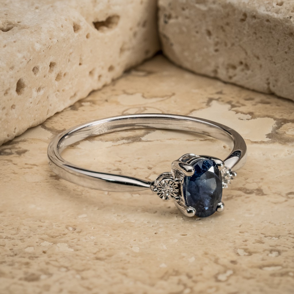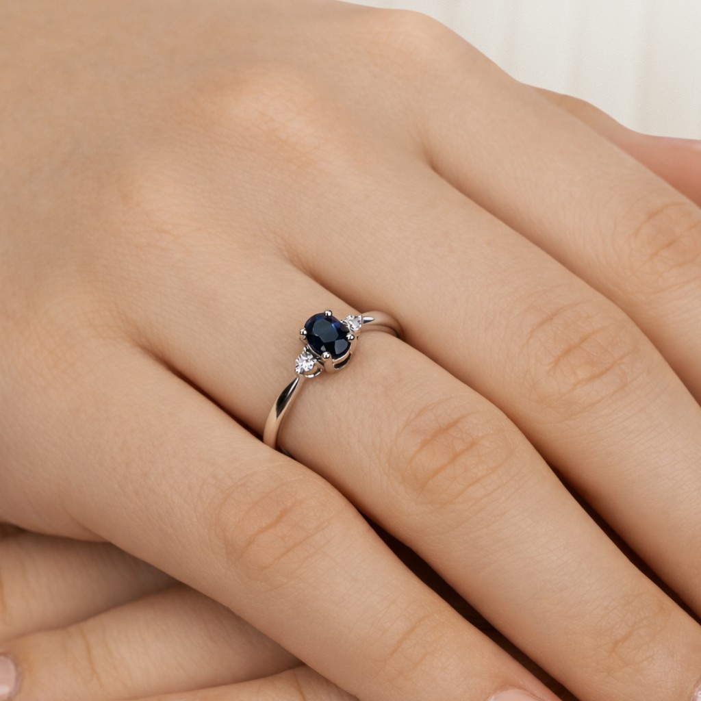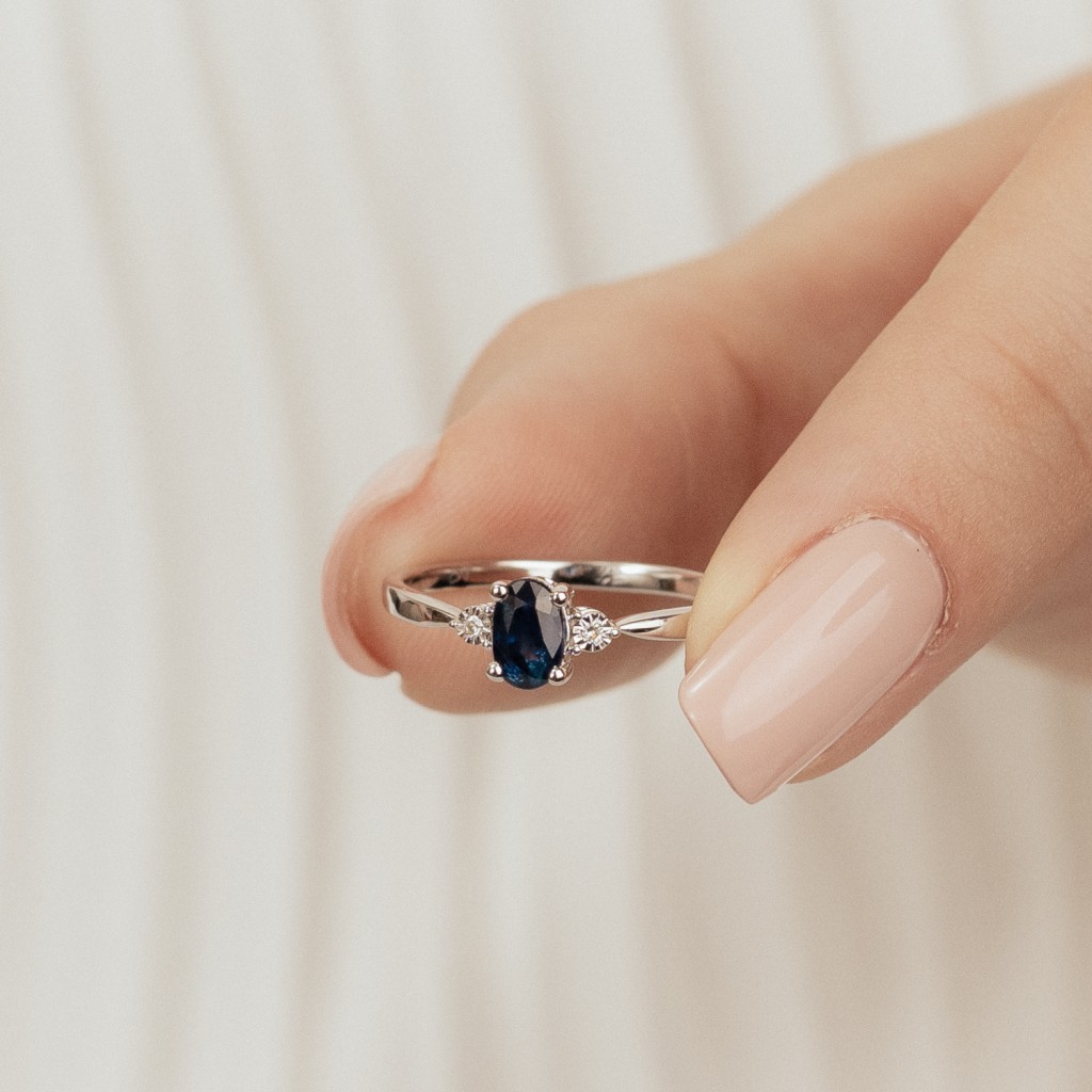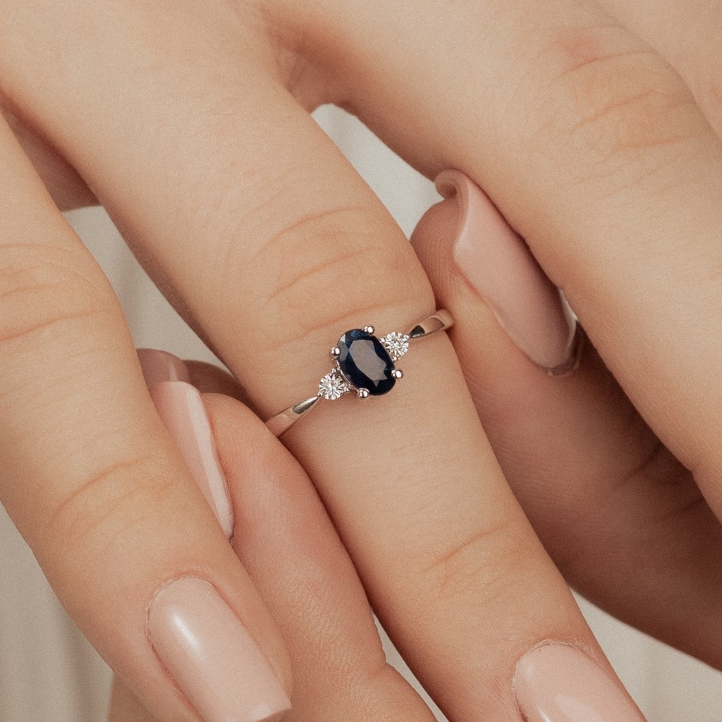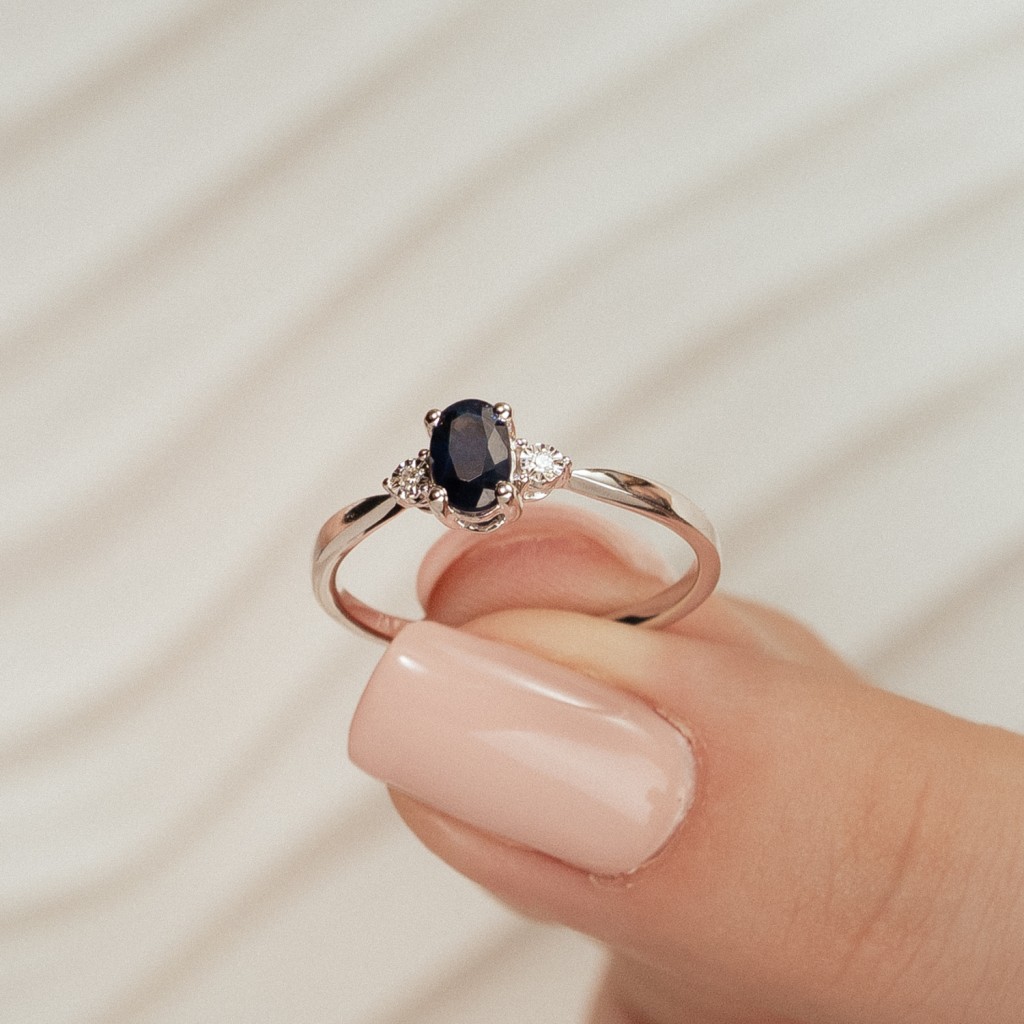 2 deimantai, 0.01 ct, TintedW/VS, 1 safyras, 0.58 ct, H, SI