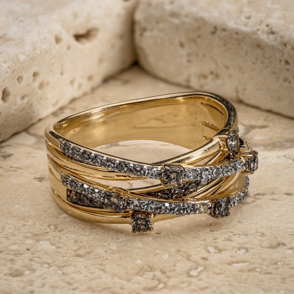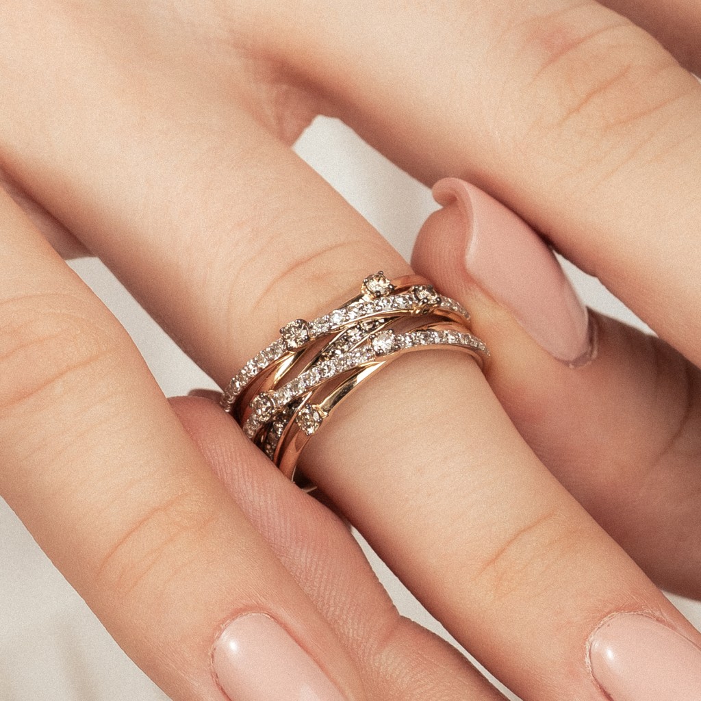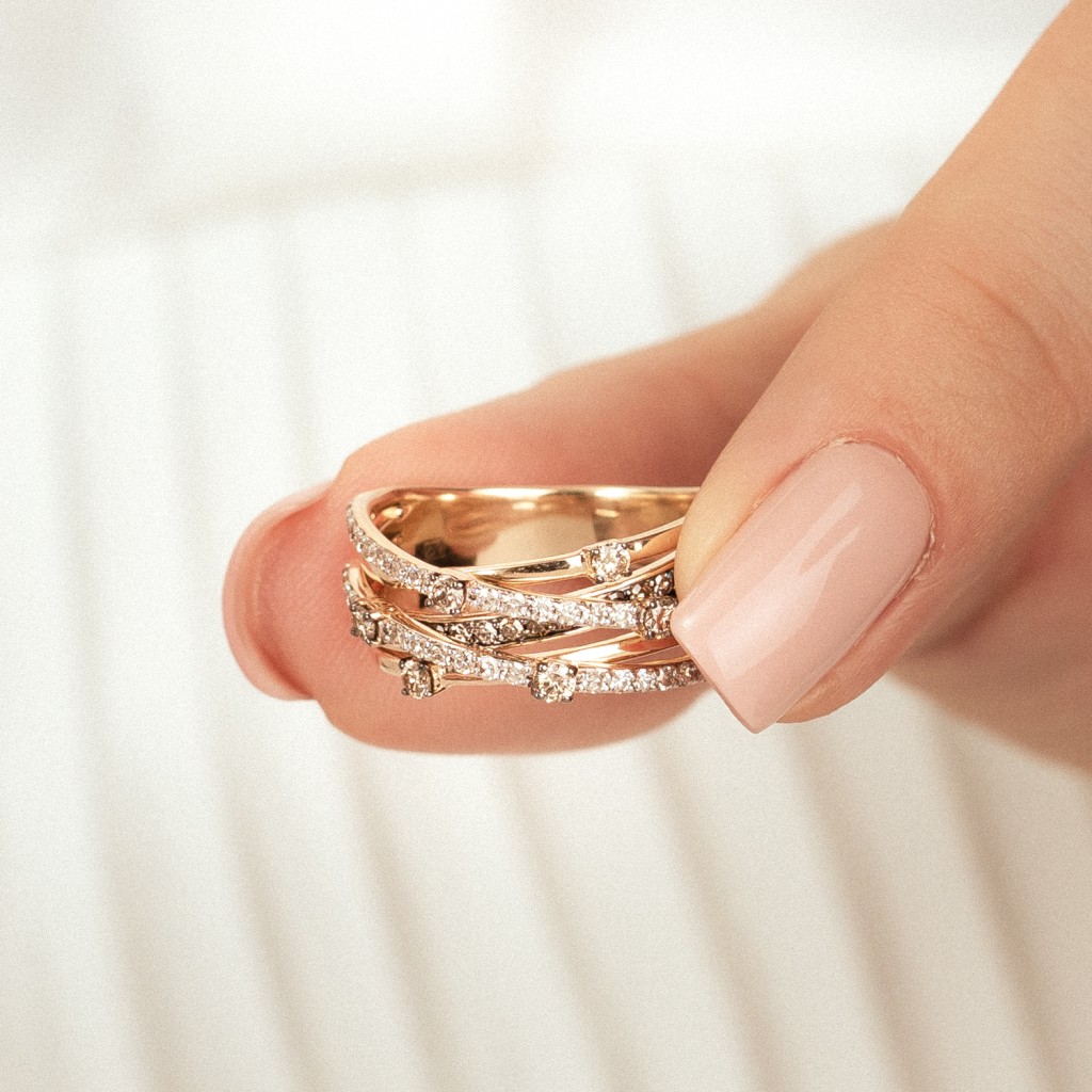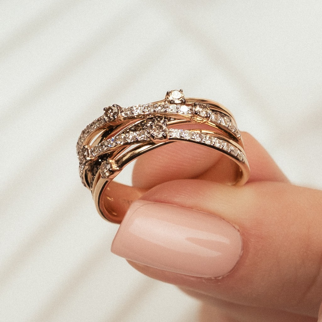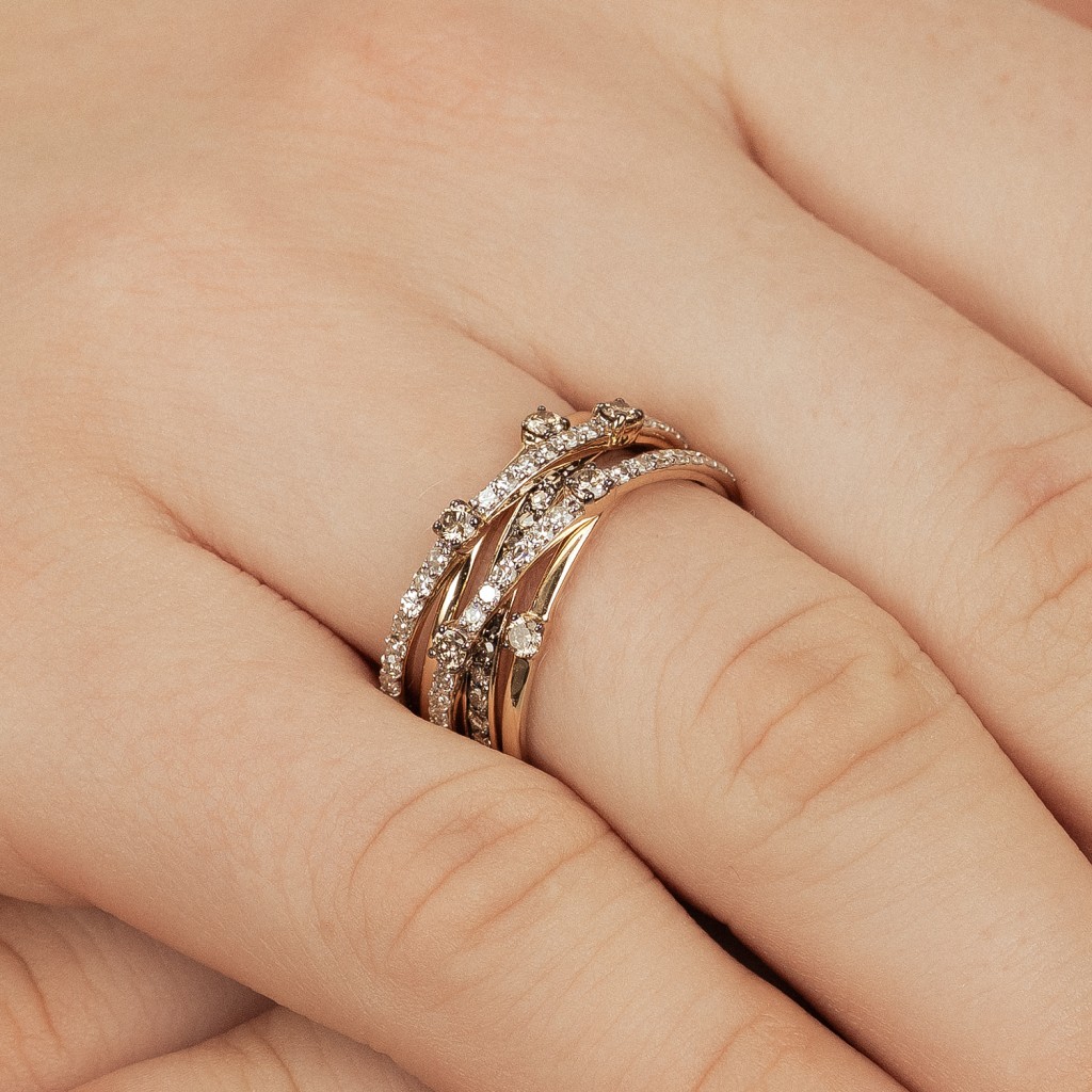 Geltono aukso žiedas su konjakiniais ir baltaisiais deimantais 0,80ct