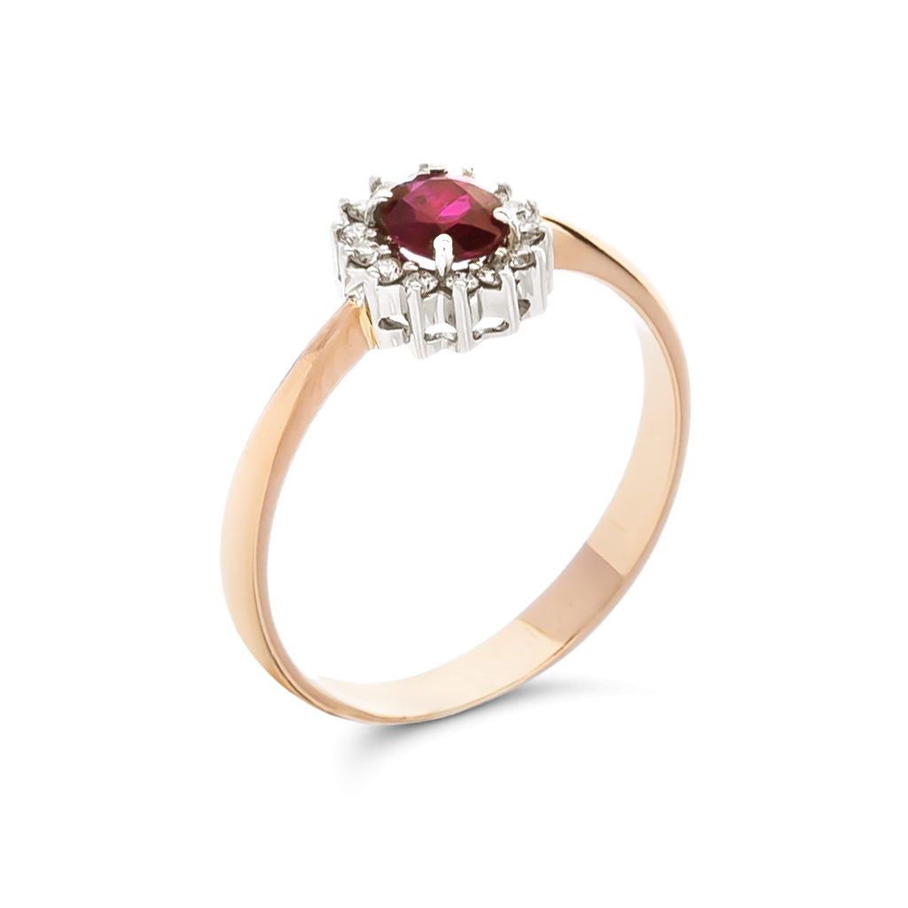 Auksinis žiedas su rubinu ir briliantais - Auksiniai Žiedai su brangakmeniais - Goldinga