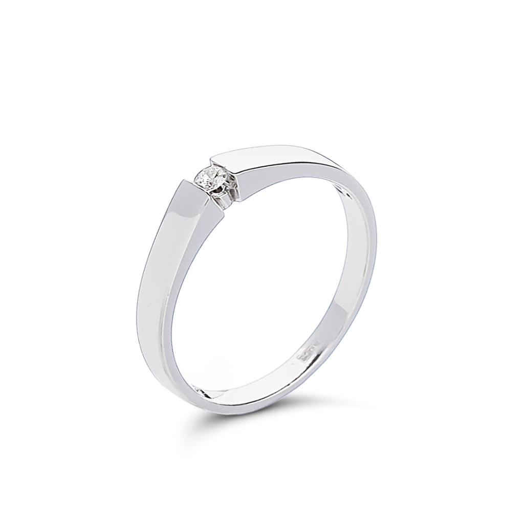Balto Aukso Žiedas Su Briliantu - Auksiniai Žiedai su brangakmeniais - Goldinga
