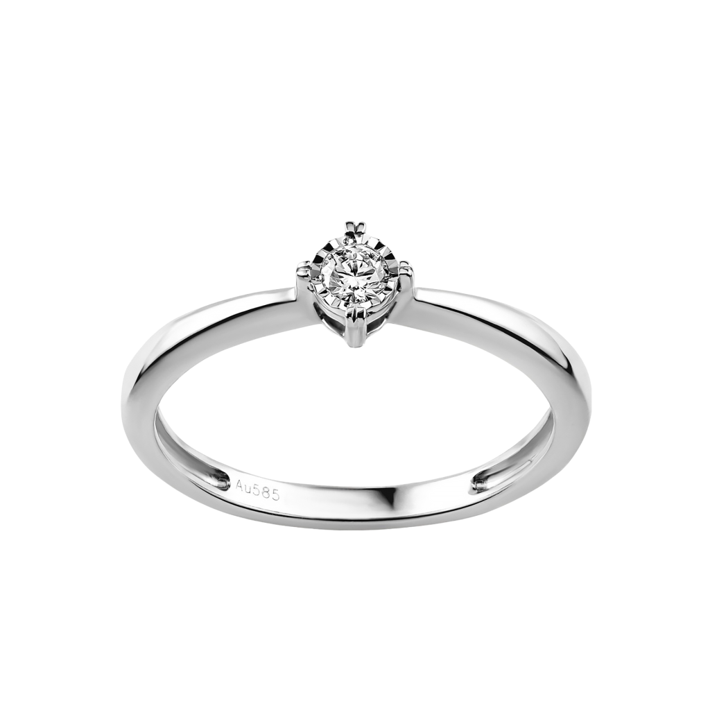 Balto aukso žiedas su briliantu - Auksiniai Žiedai su brangakmeniais - Goldinga