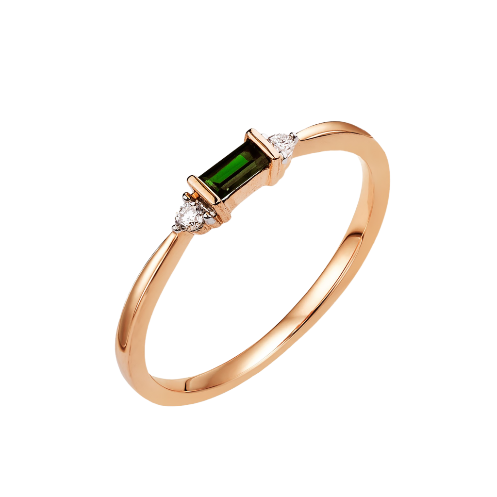 Auksinis žiedas su smaragdu ir briliantais - Auksiniai Žiedai su brangakmeniais - Goldinga