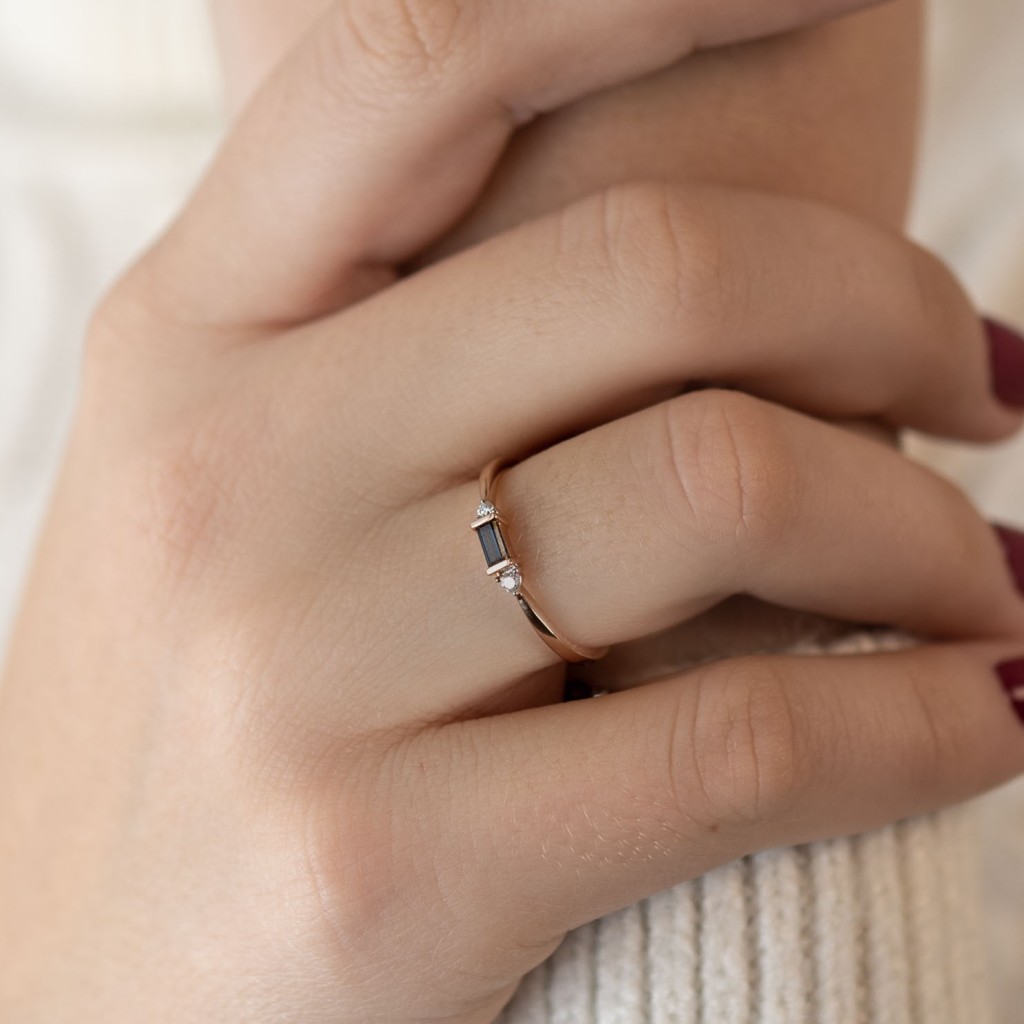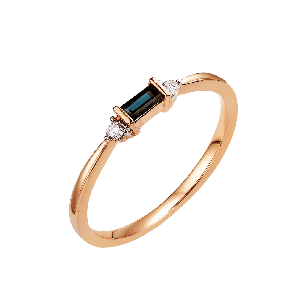 Auksinis žiedas su safyru ir briliantais - Auksiniai Žiedai su brangakmeniais - Goldinga