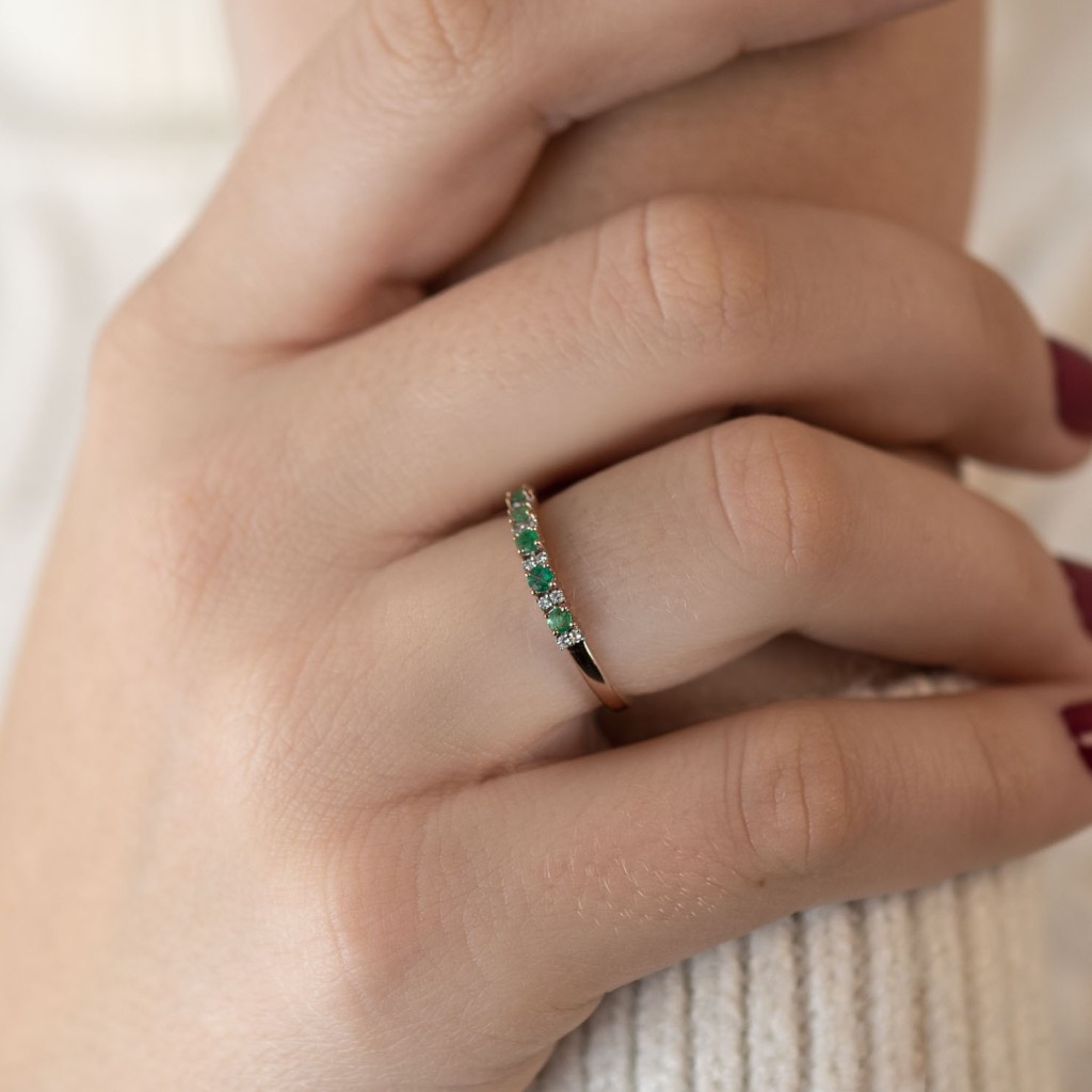 Auksinis žiedas su smaragdais ir briliantais - Auksiniai Žiedai su brangakmeniais - Goldinga