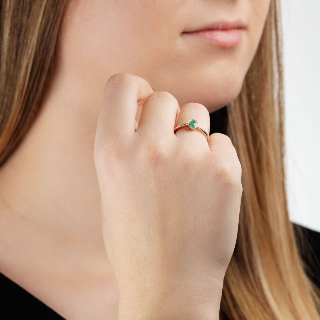 Auksinis žiedas su smaragdu ir briliantais - Auksiniai Žiedai su brangakmeniais - Goldinga