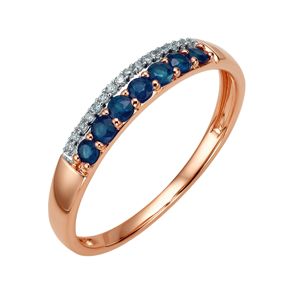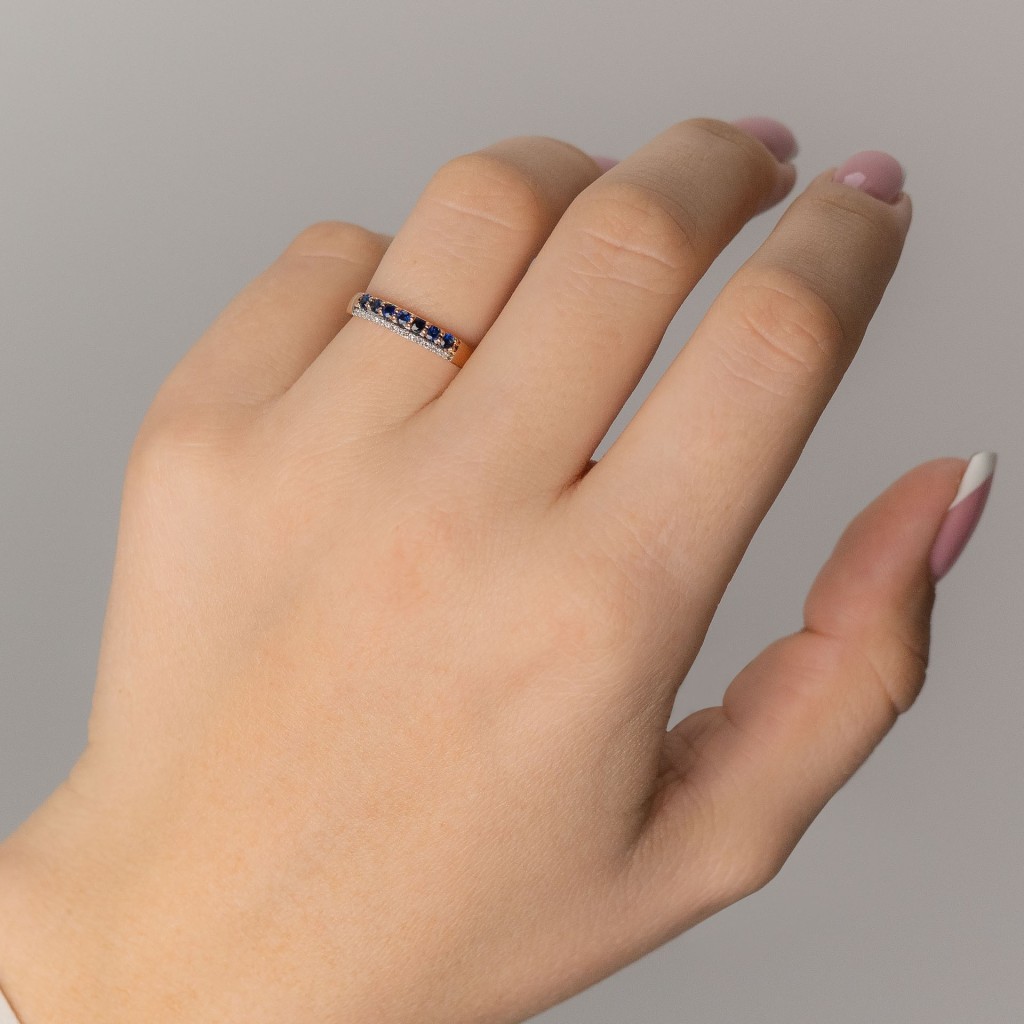 Auksinis žiedas su safyrais ir briliantais - Auksiniai Žiedai su brangakmeniais - Goldinga