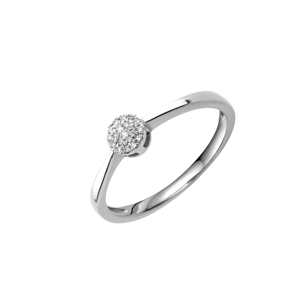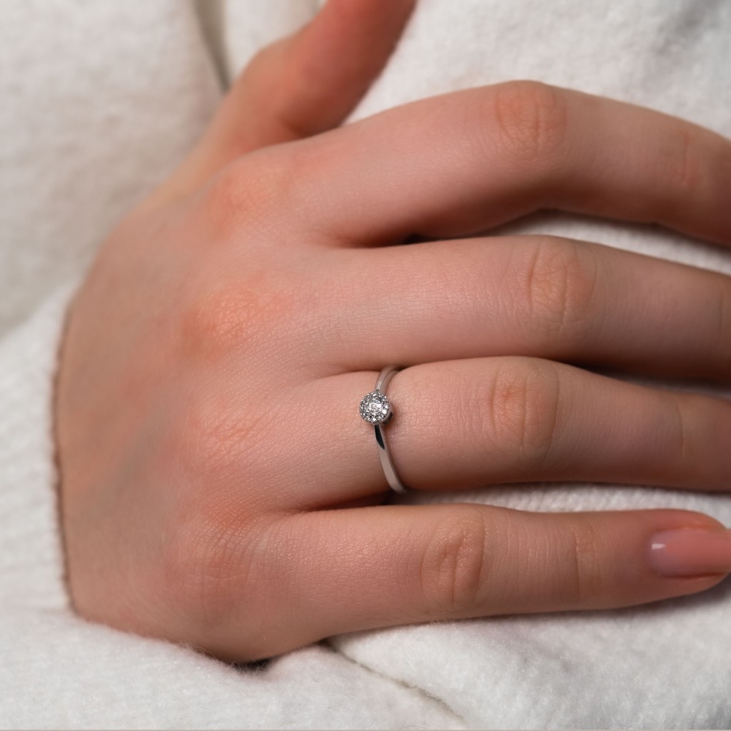 Balto aukso žiedas su deimantais - Auksiniai Žiedai su brangakmeniais - Goldinga