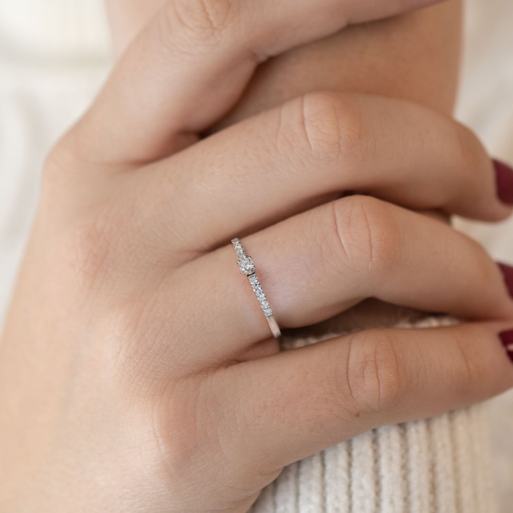 1 briliantas 0.07ct W-PI, 10 briliantu 0.09 ct RW-W, S1