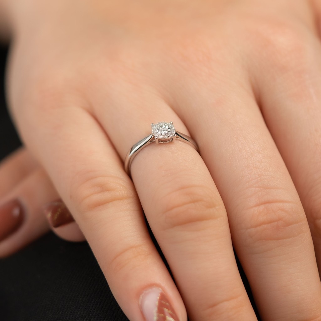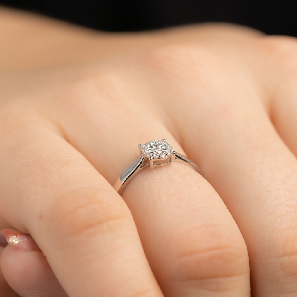 Balto aukso žiedas su deimantais