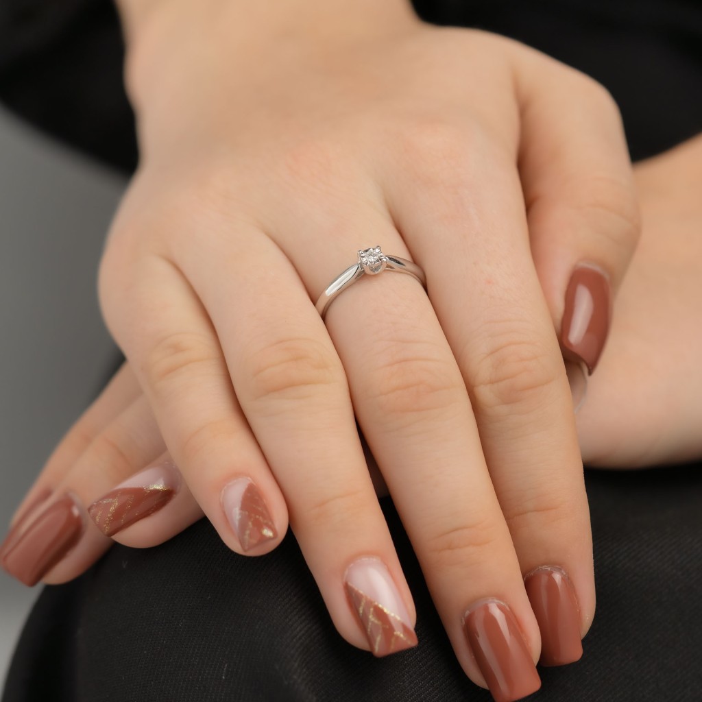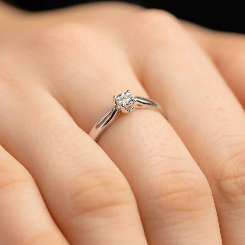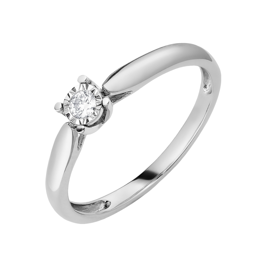Balto aukso žiedas su briliantu - Auksiniai Žiedai su brangakmeniais - Goldinga