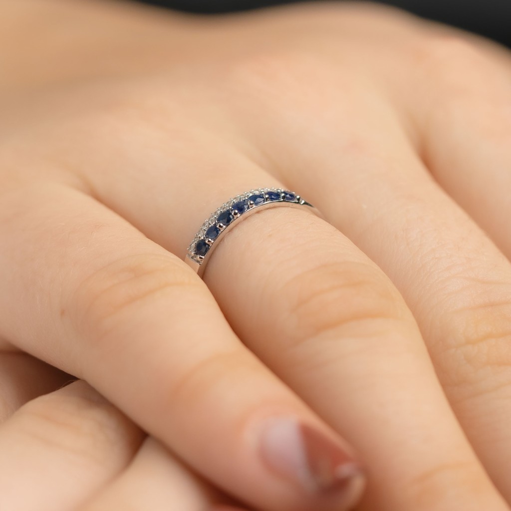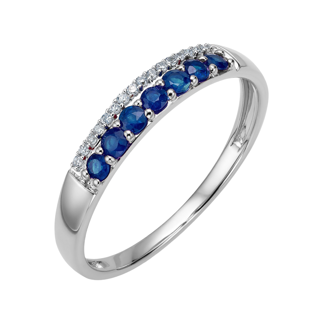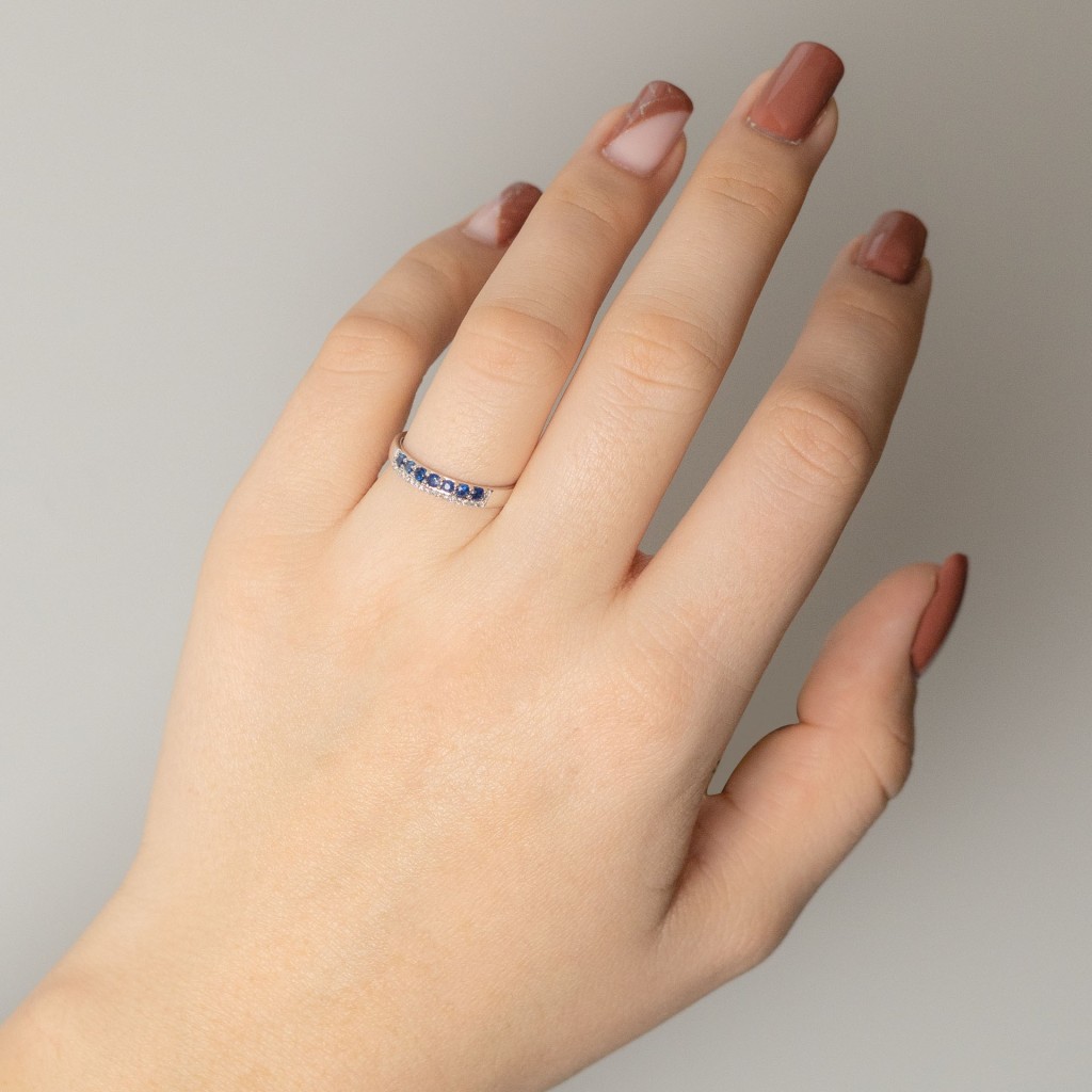 Balto aukso žiedas su safyrais ir deimantais - Auksiniai Žiedai su brangakmeniais - Goldinga