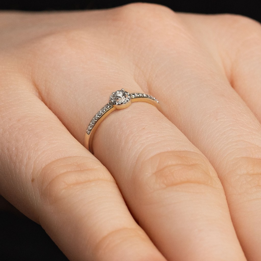 Geltono aukso žiedas su deimantu