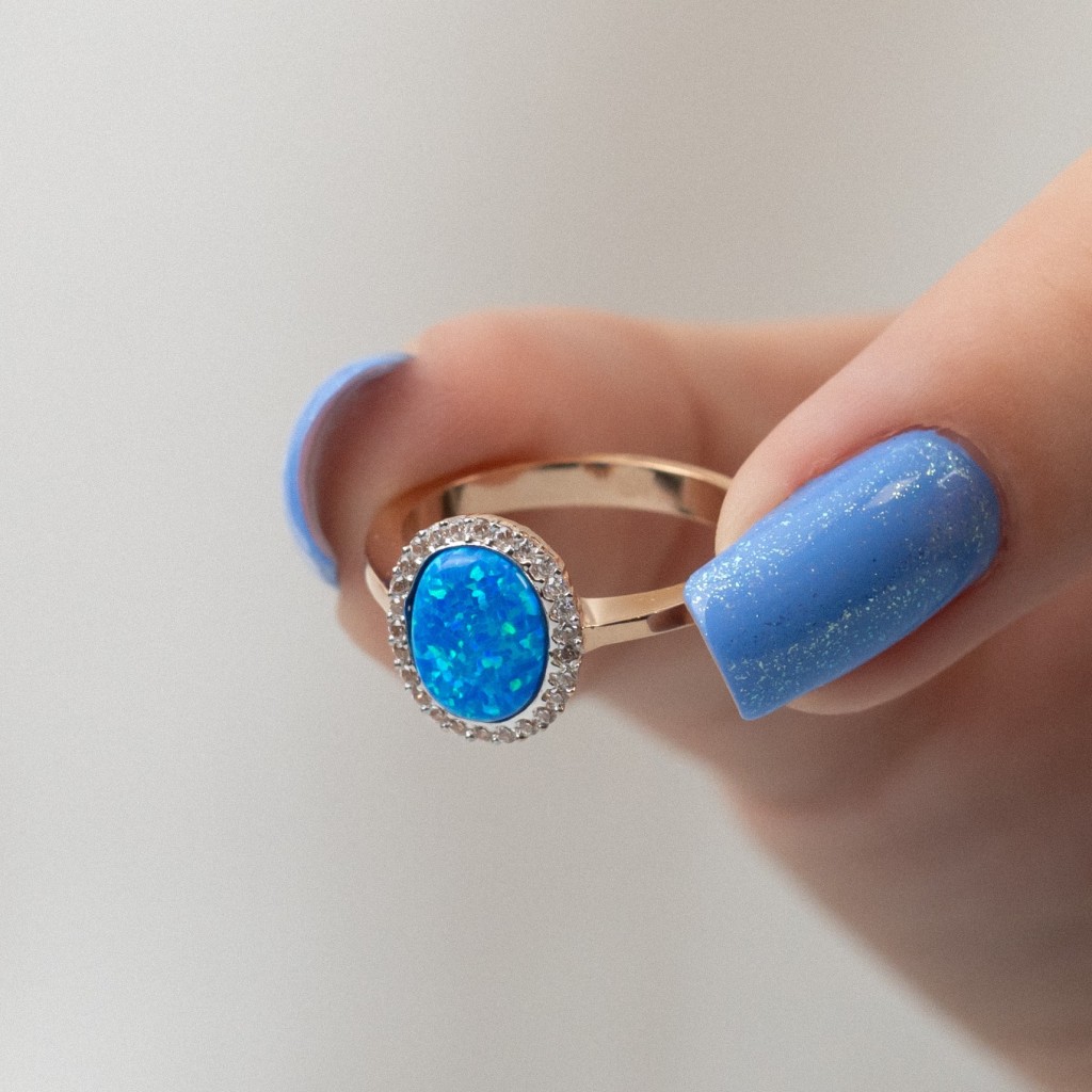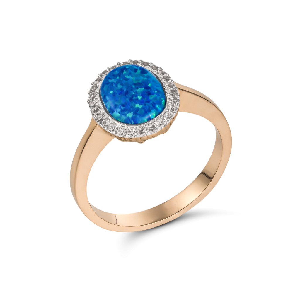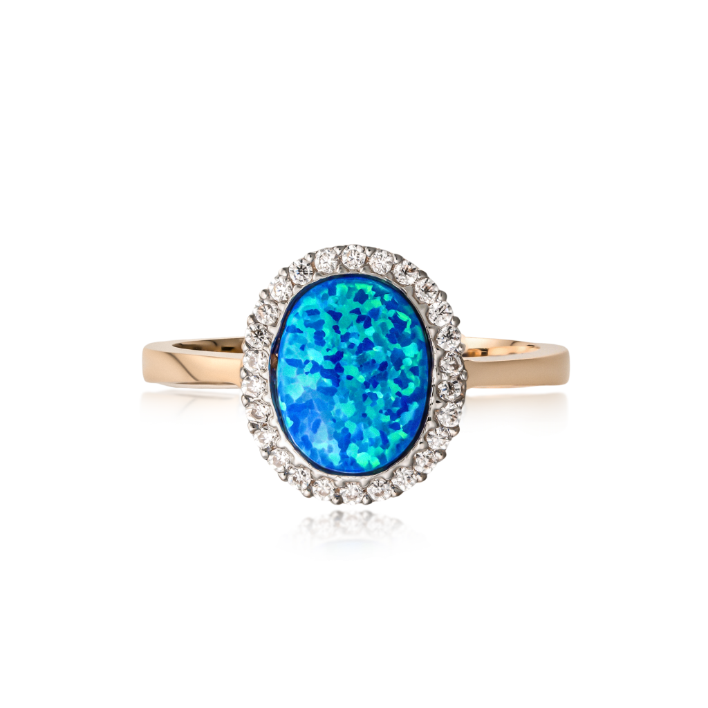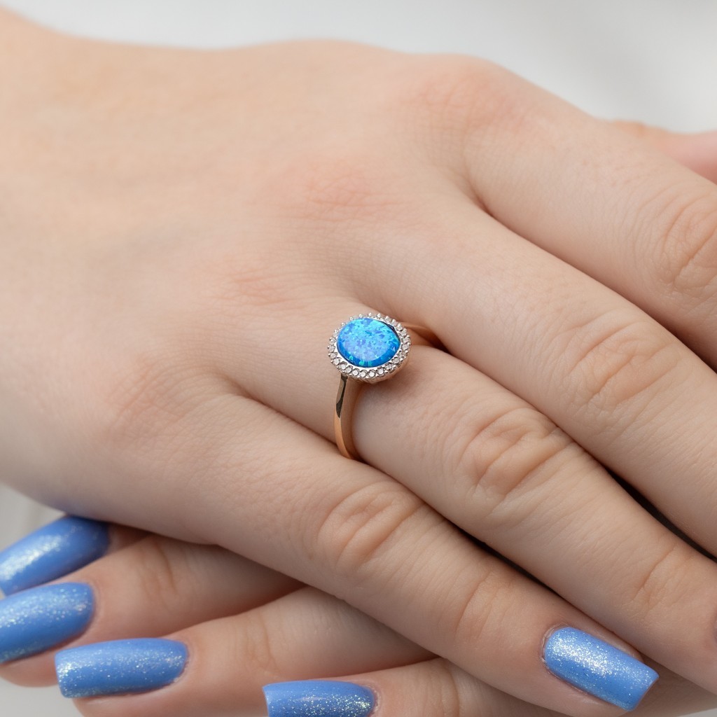Auksinis žiedas su opalu ir cirkoniais
