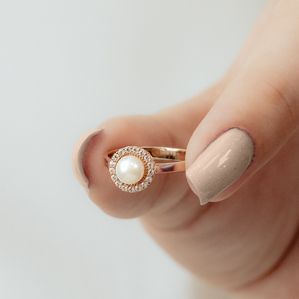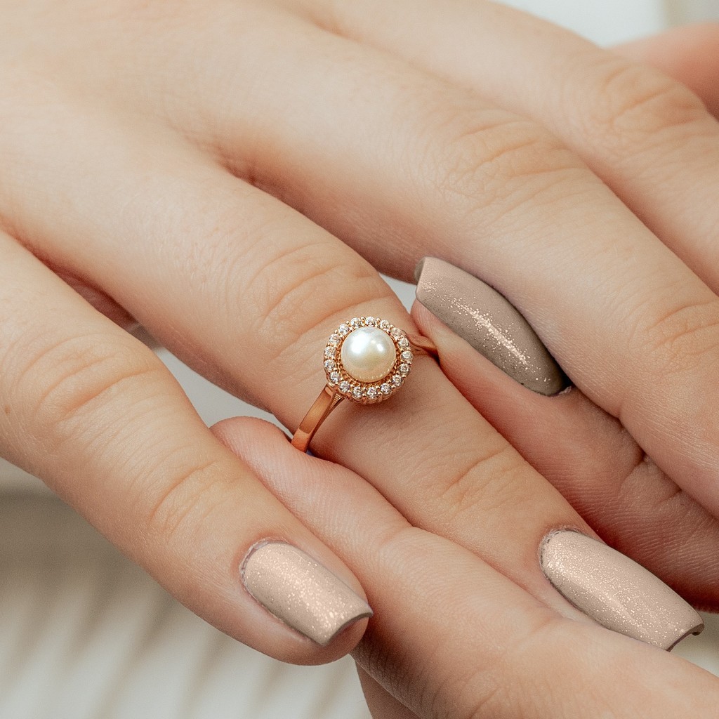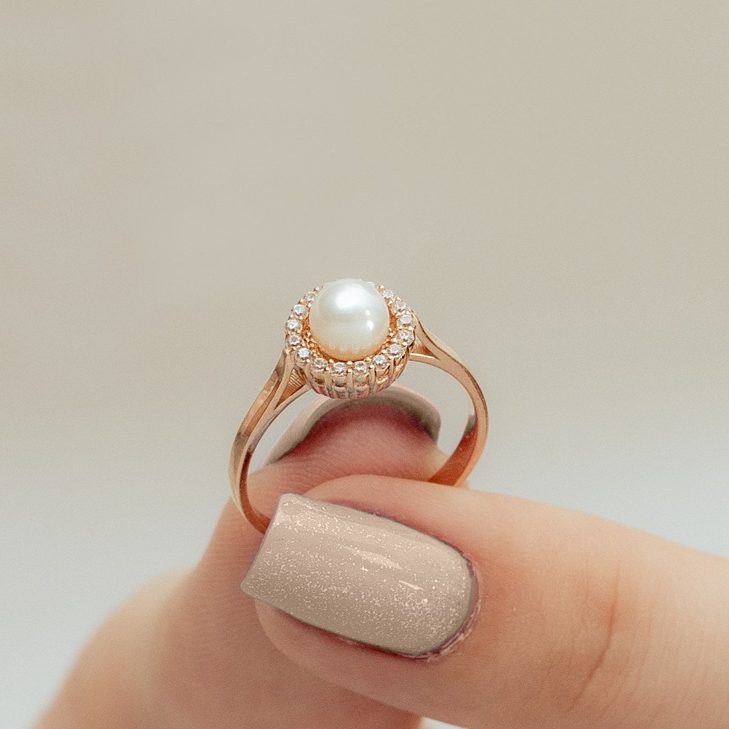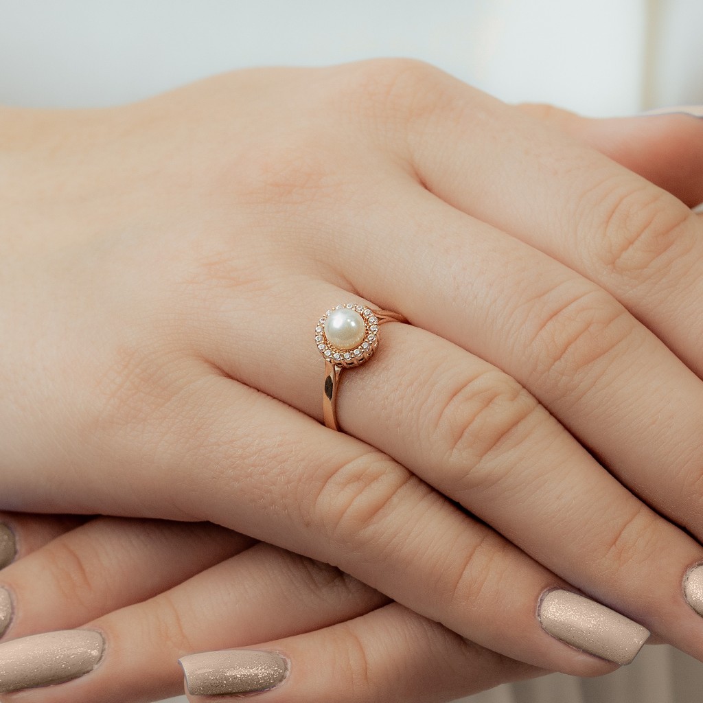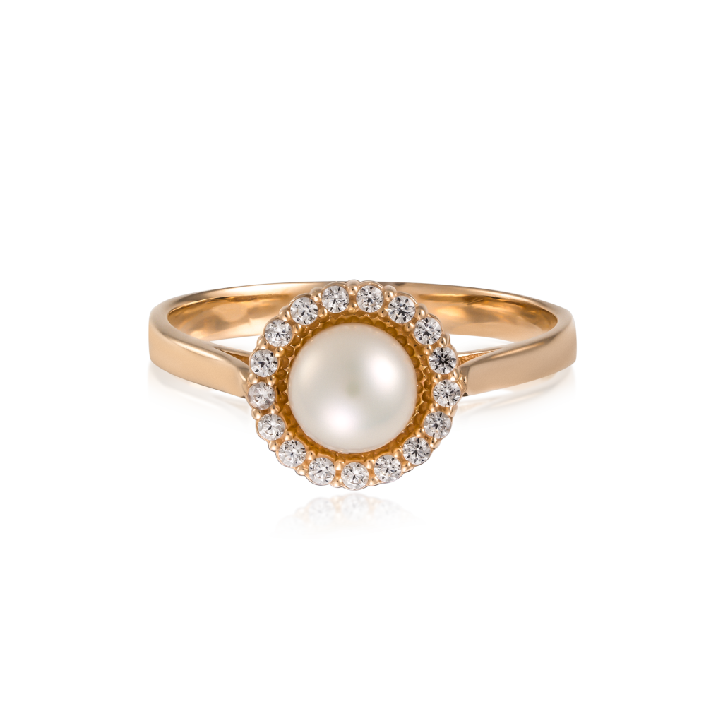 Auksinis žiedas su perlu ir cirkoniais