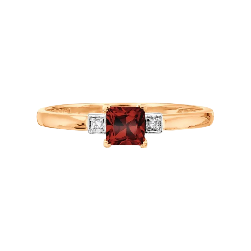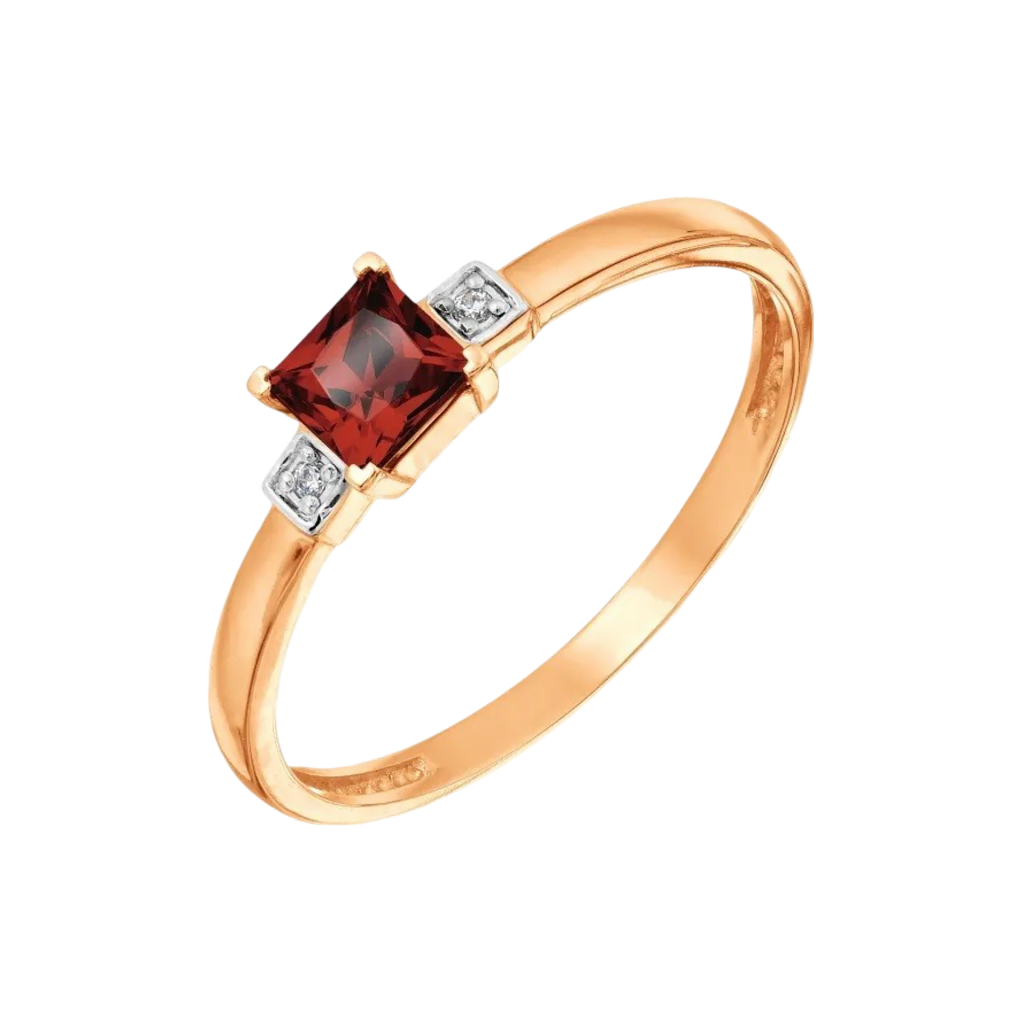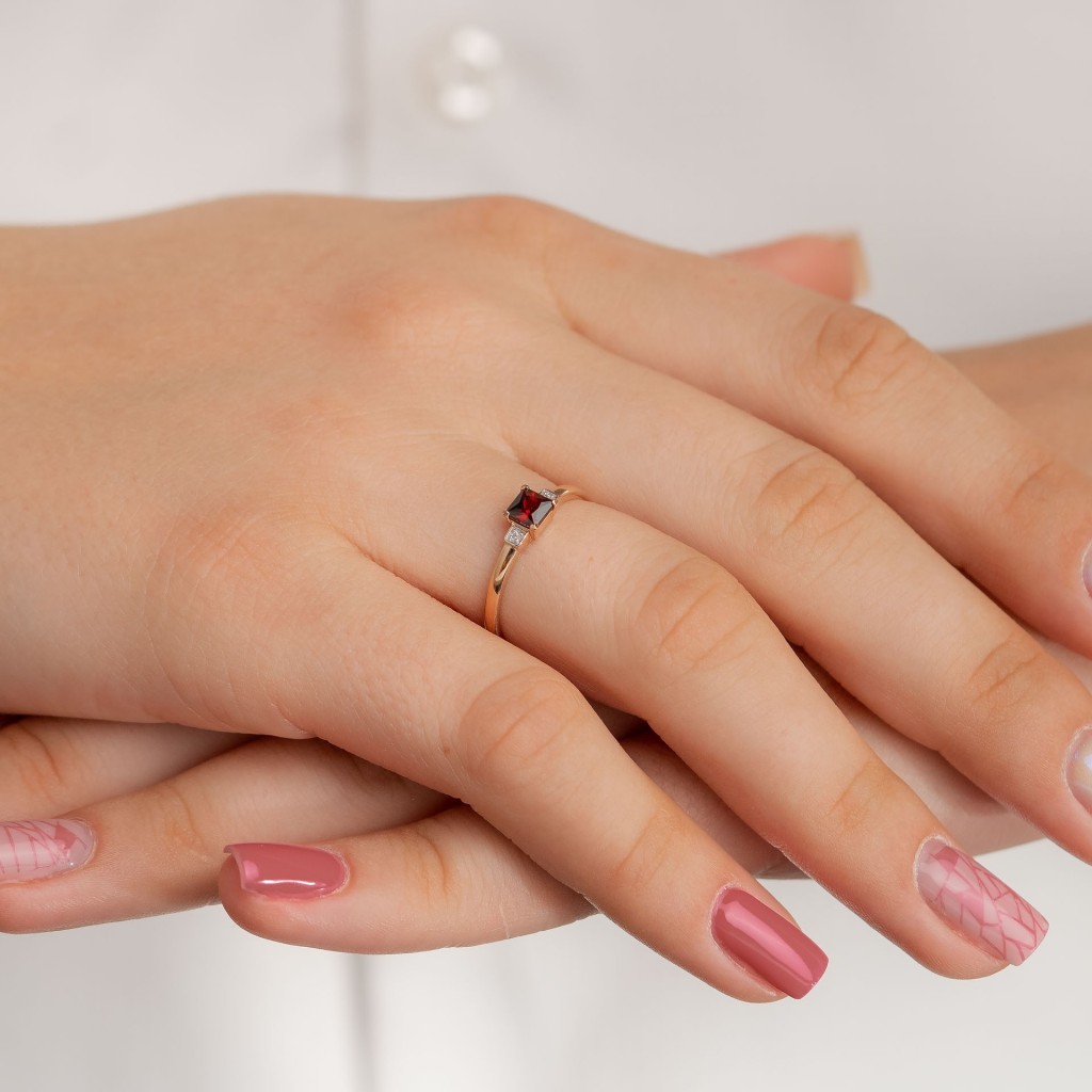 Auksinis žiedas su granatu ir cirkoniais - Auksiniai žiedai - Goldinga