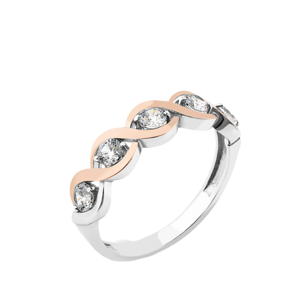 Sidabrinis žiedas dengtas auksu su cirkoniais - Sidabriniai žiedai - Goldinga