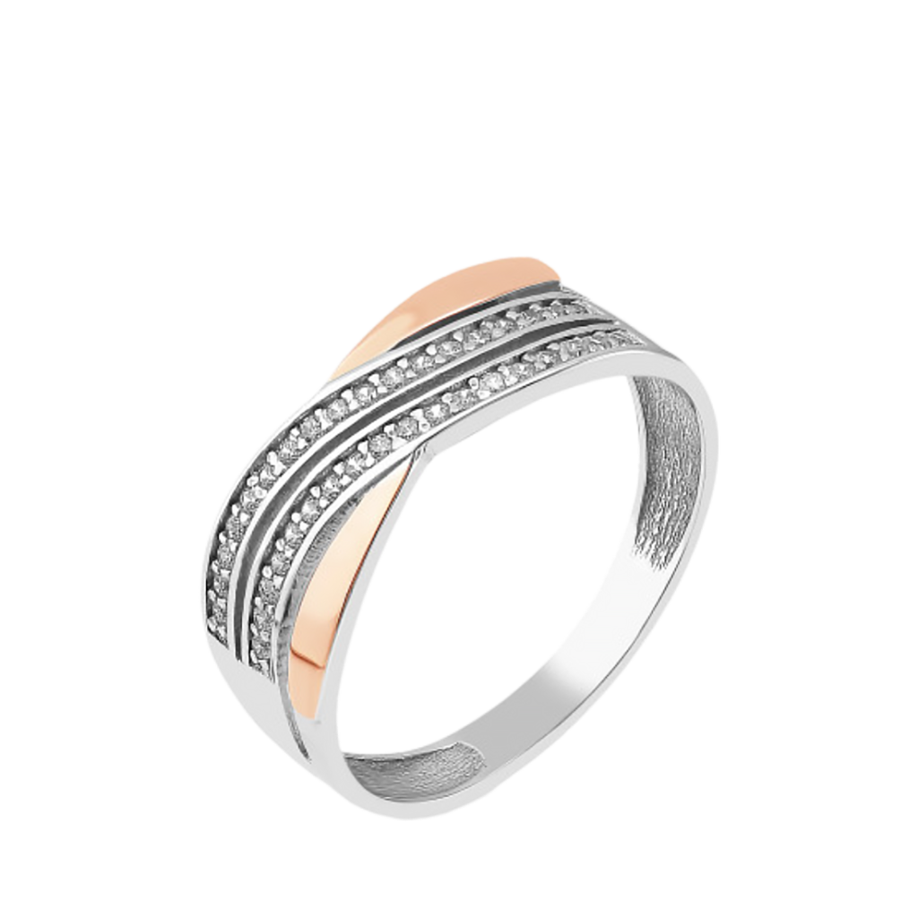 Sidabrinis žiedas dengtas auksu su cirkoniais - Sidabriniai žiedai - Goldinga