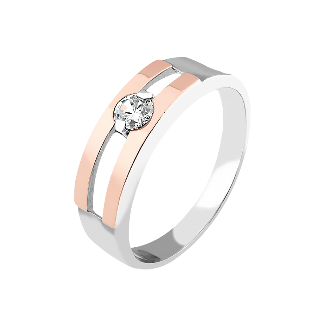 Sidabrinis žiedas dengtas auksu su cirkoniais - Sidabriniai žiedai - Goldinga