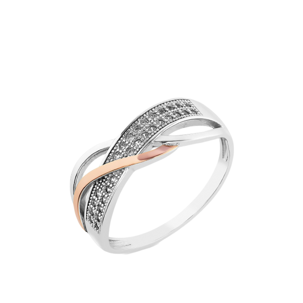 Sidabrinis žiedas dengtas auksu su cirkoniais - Sidabriniai žiedai - Goldinga