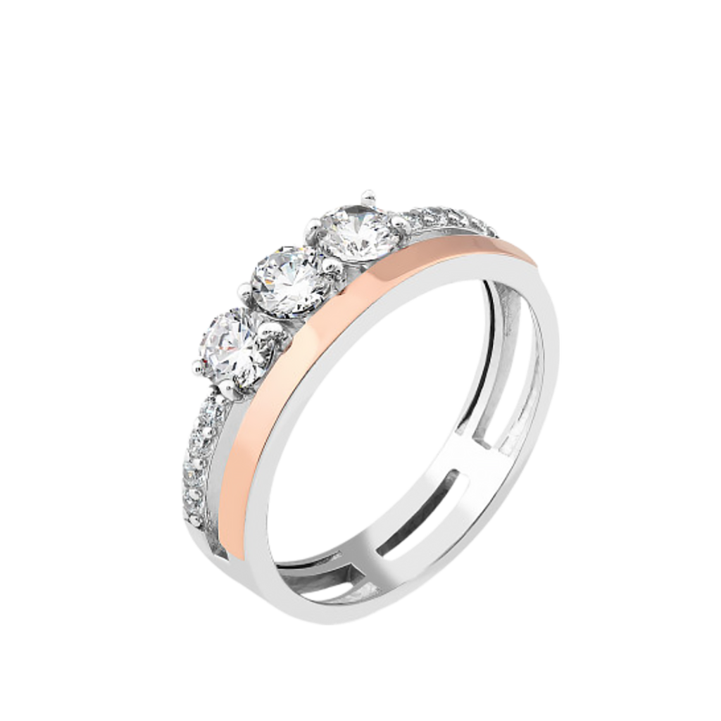 Sidabrinis žiedas dengtas auksu su cirkoniais