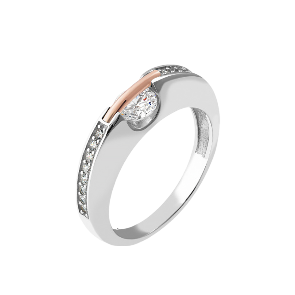 Sidabrinis žiedas dengtas auksu su cirkoniais