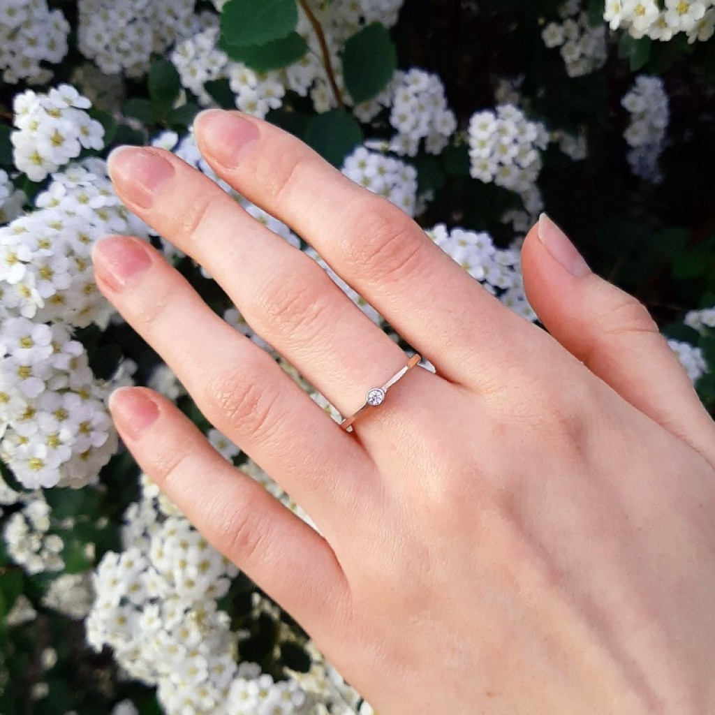 Sidabrinis žiedas dengtas auksu su cirkoniais - Sidabriniai žiedai - Goldinga