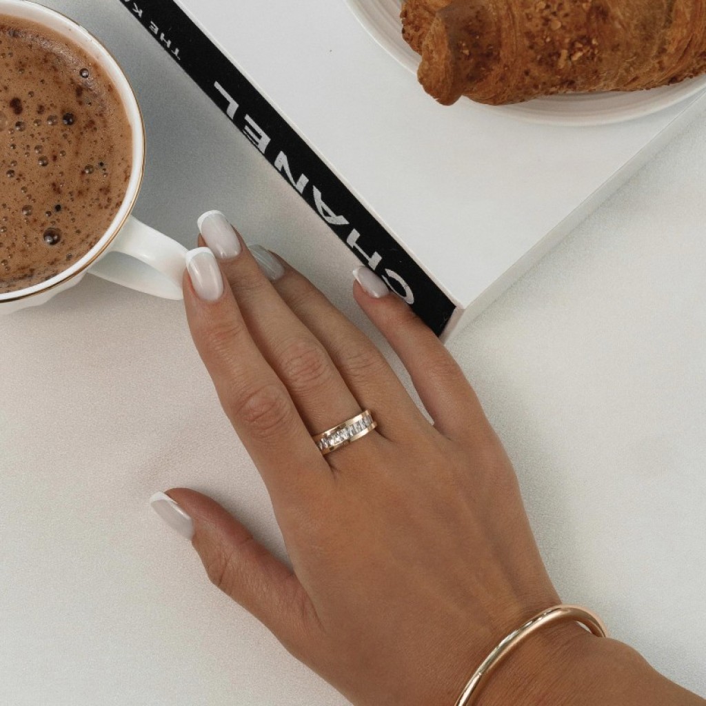 Sidabrinis žiedas dengtas auksu su cirkoniais - Sidabriniai žiedai - Goldinga
