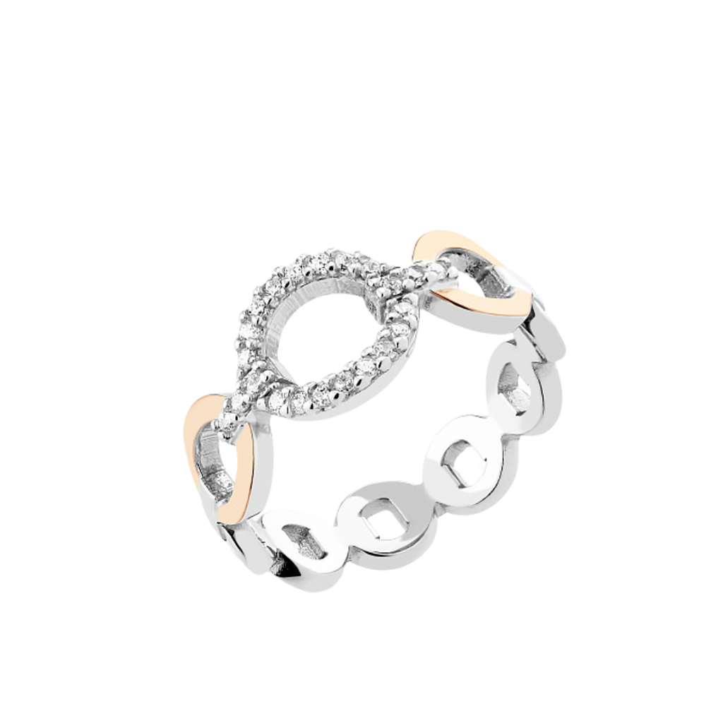Sidabrinis žiedas dengtas auksu su cirkoniais - Sidabriniai žiedai - Goldinga