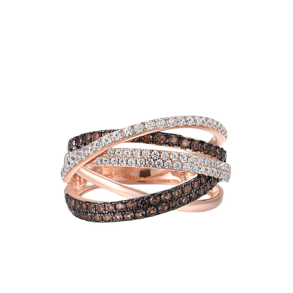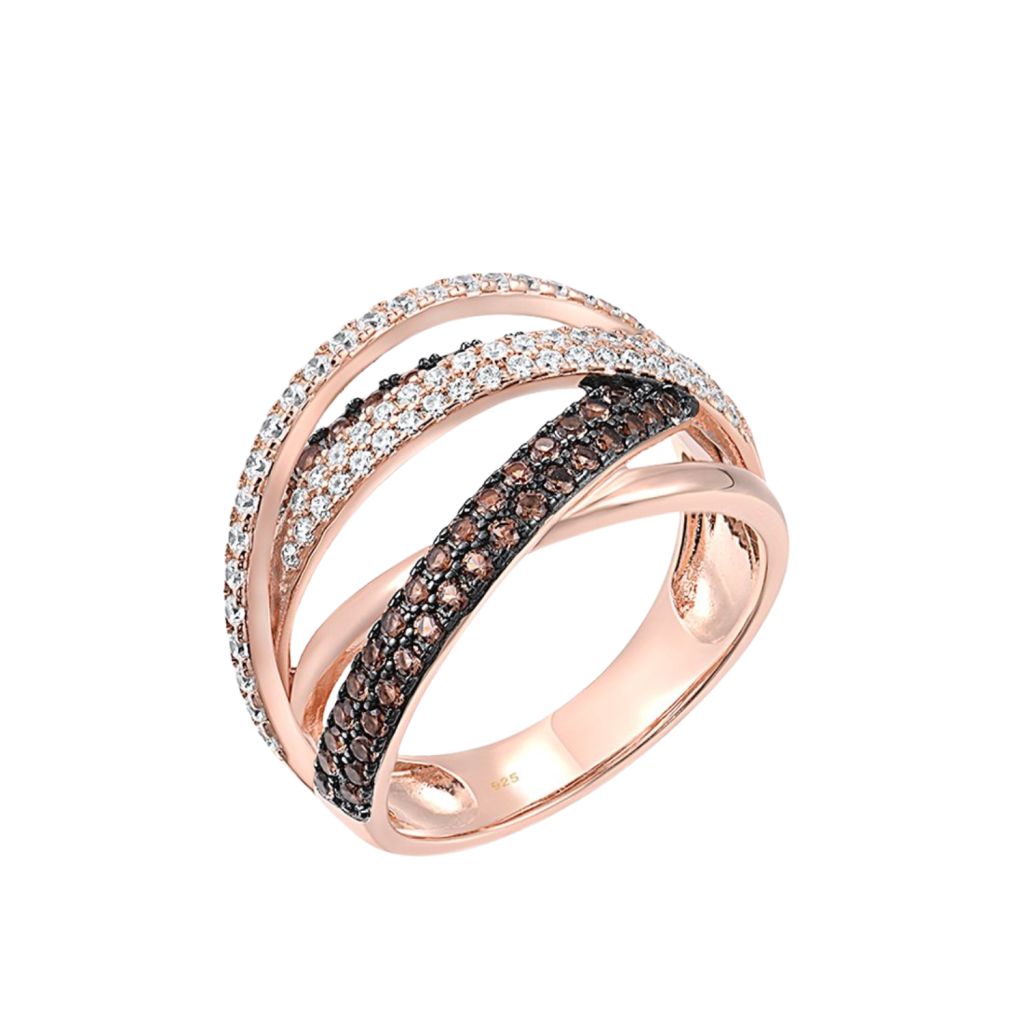 Paauksuotas sidabrinis žiedas su cirkoniais ir špineliais