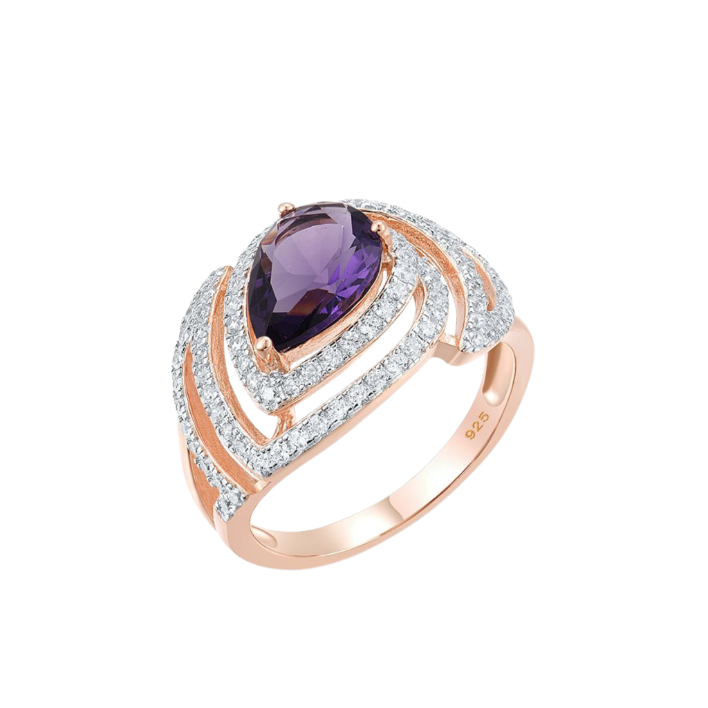 Paauksuotas sidabrinis žiedas su cirkoniais - Sidabriniai žiedai - Goldinga