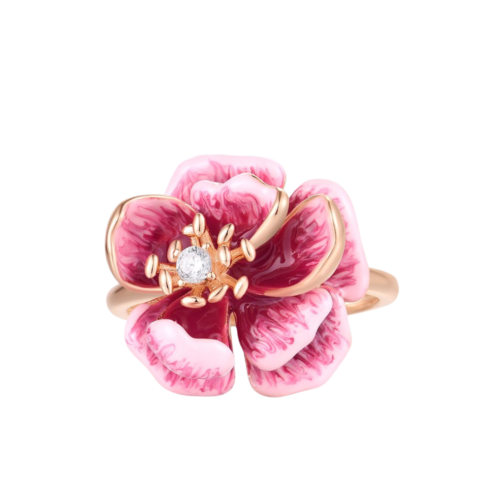 Paauksuotas sidabrinis žiedas su emale ir cirkoniais - Sidabriniai žiedai - Goldinga
