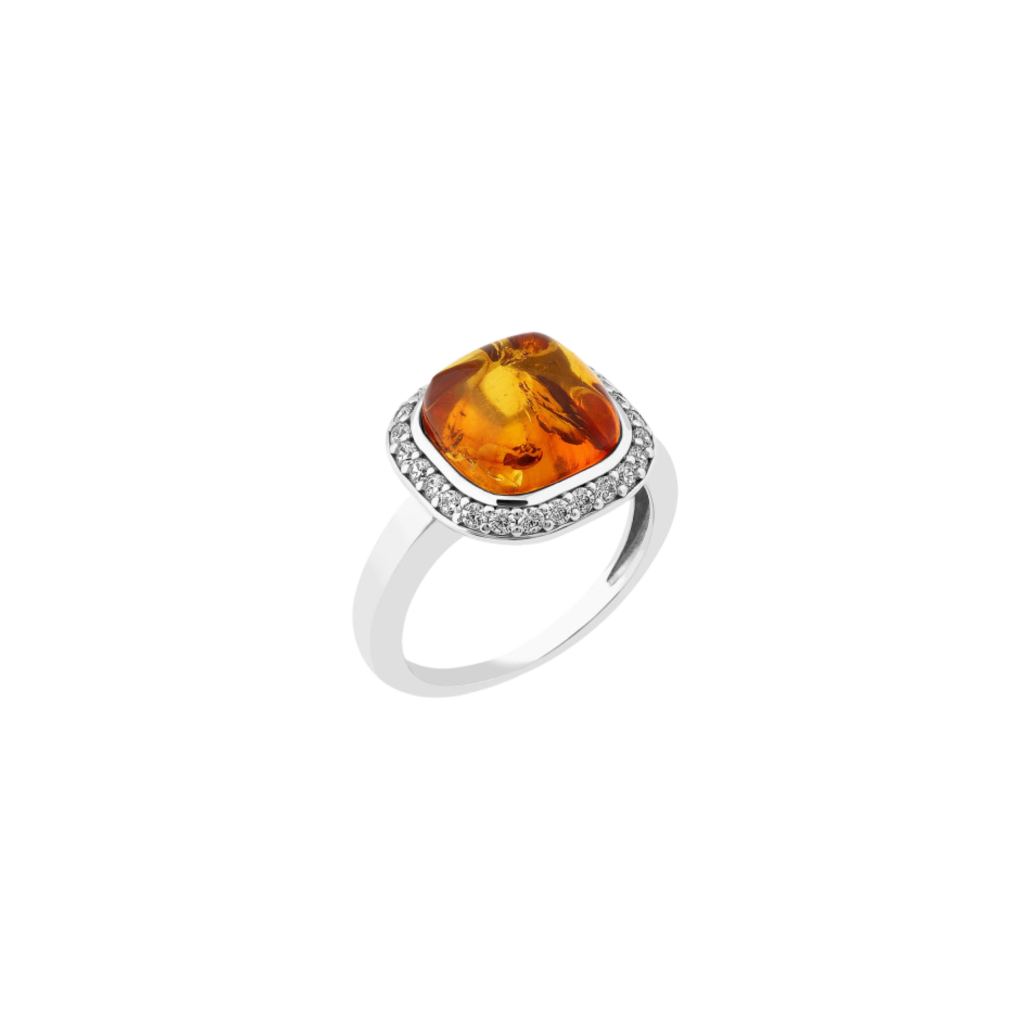Sidabrinis žiedas dengtas auksu su cirkoniais ir gintaru