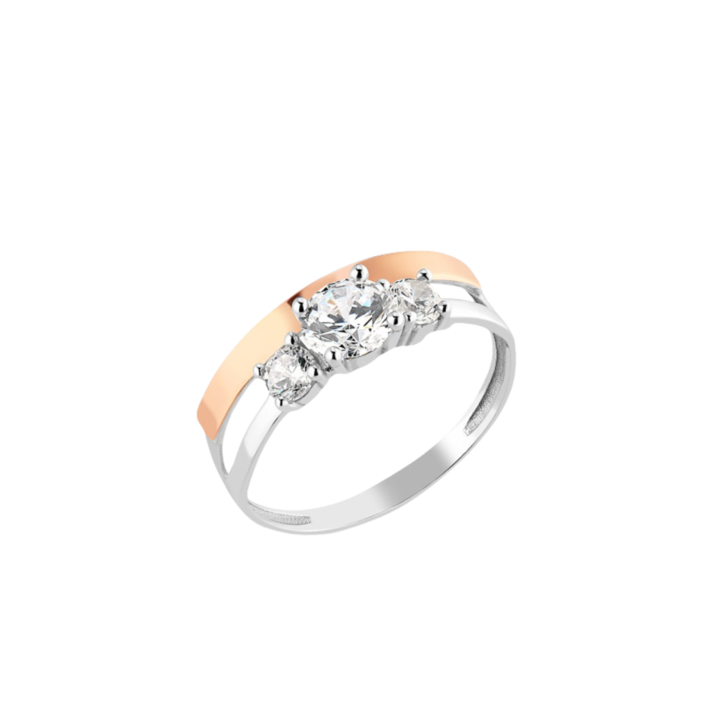 Sidabrinis žiedas dengtas auksu su cirkoniais