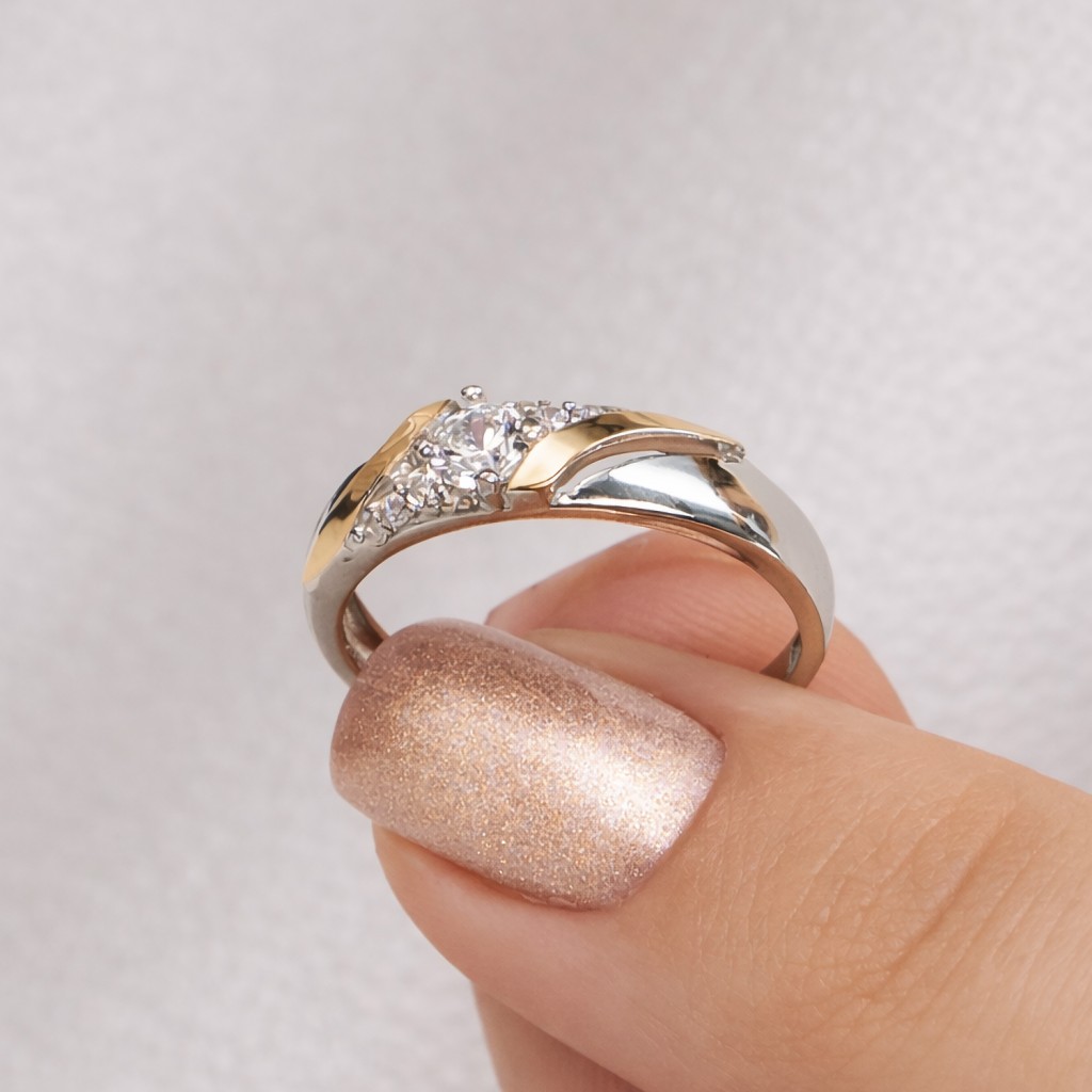 Sidabrinis žiedas dengtas auksu su cirkoniais
