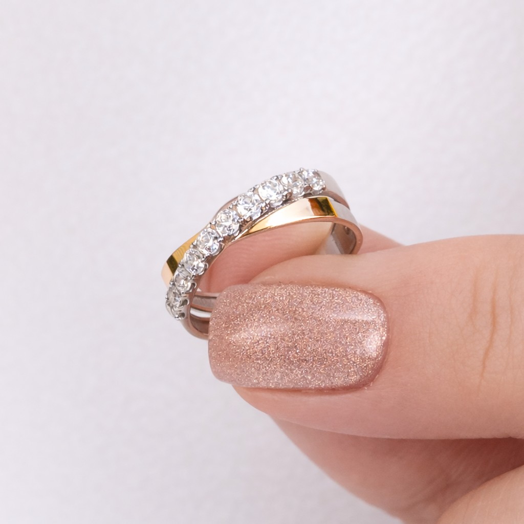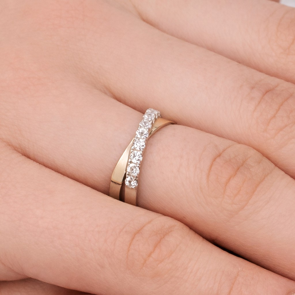 Sidabrinis žiedas dengtas auksu su cirkoniais