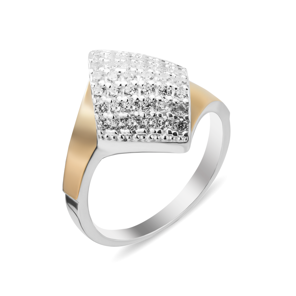 Sidabrinis žiedas su cirkoniais dengtas auksu - Sidabriniai žiedai - Goldinga