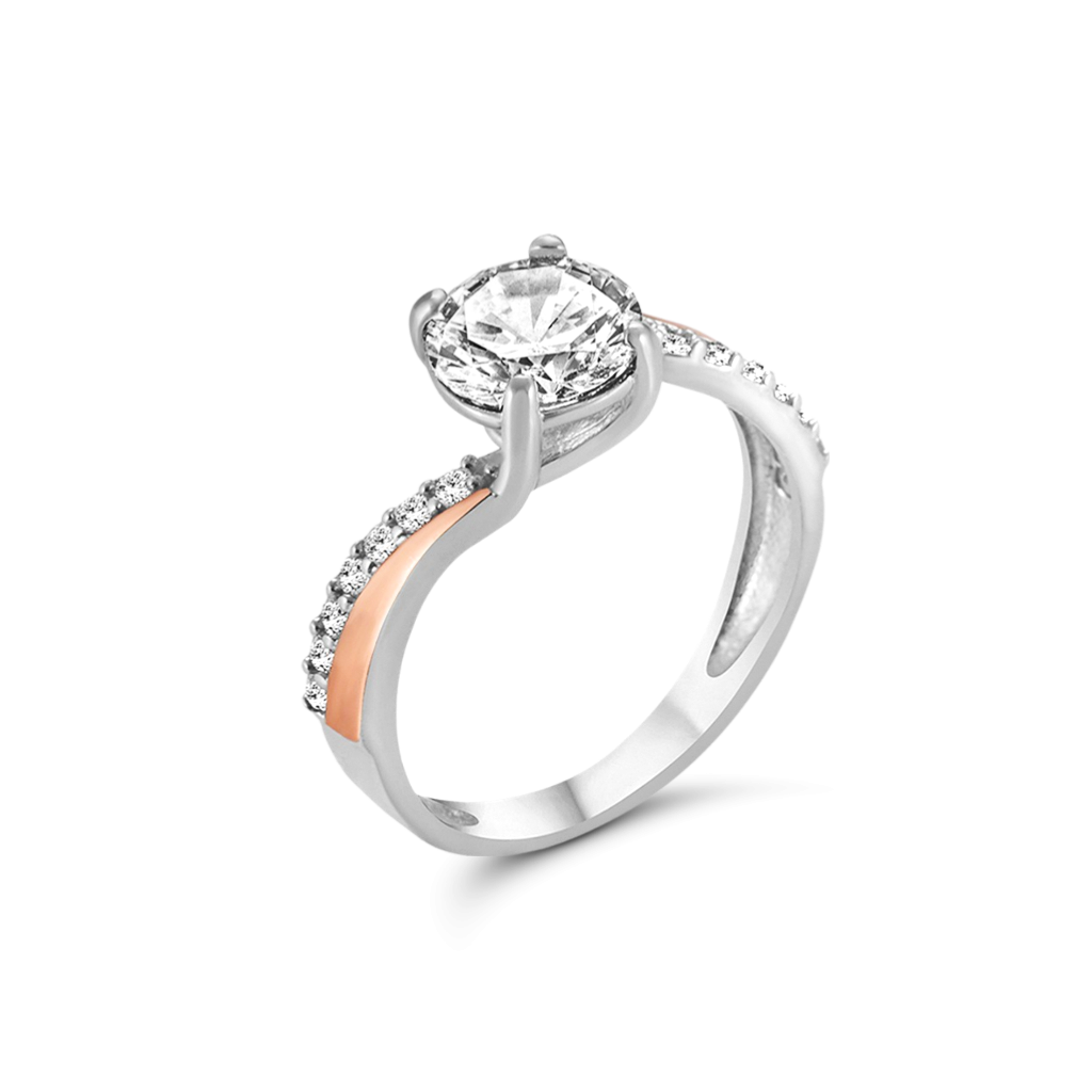 Sidabrinis žiedas su cirkoniais dengtas auksu - Sidabriniai žiedai - Goldinga