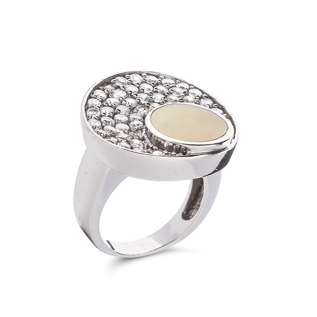 Sidabrinis žiedas su cirkoniais ir emale - Sidabriniai žiedai - Goldinga